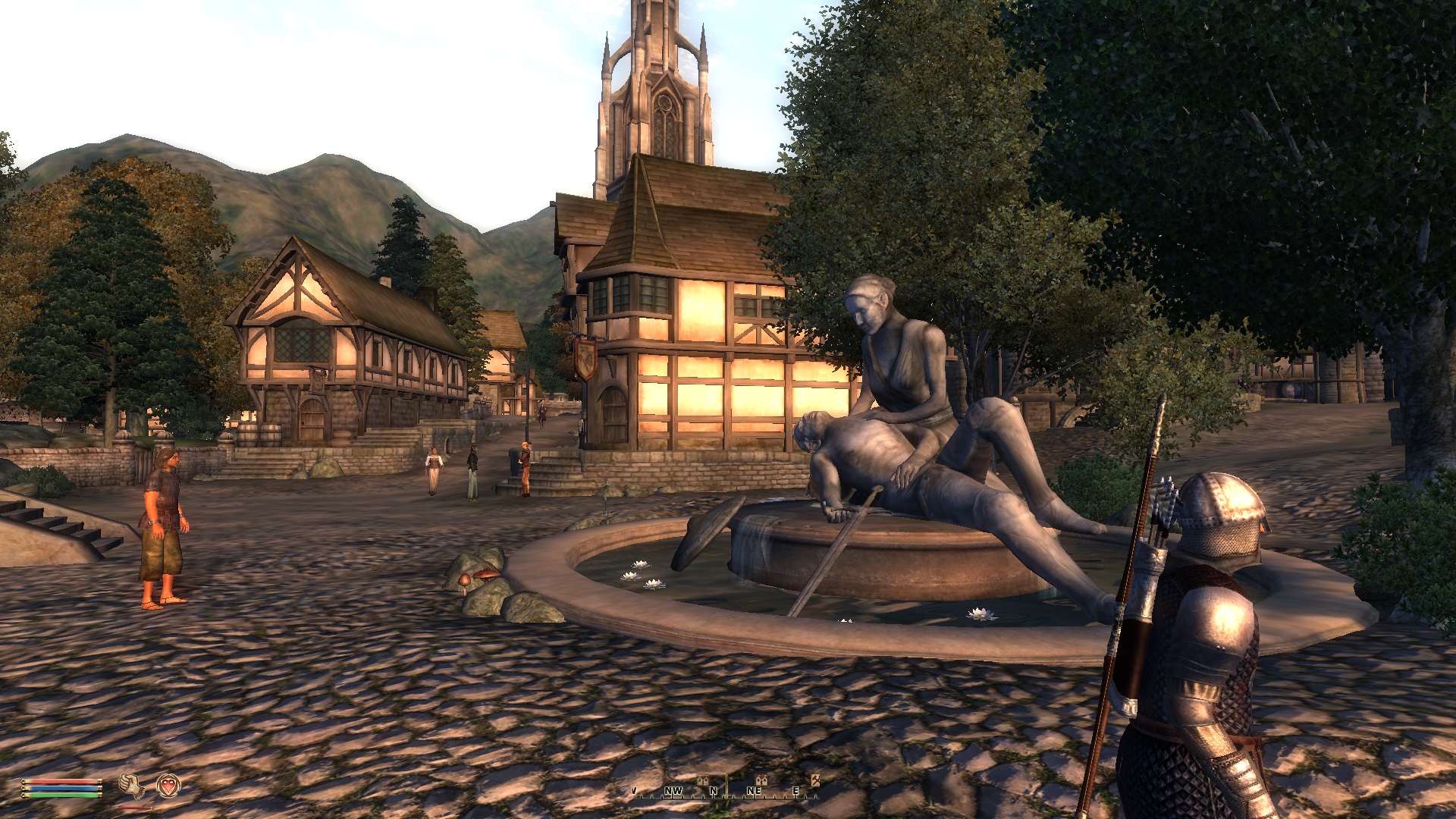 Поговорив со стражником в Корроле, можно узнать, что таверны и магазины находятся у фонтана. Этот небольшой мод превращает городскую статую в тот самый фонтан.