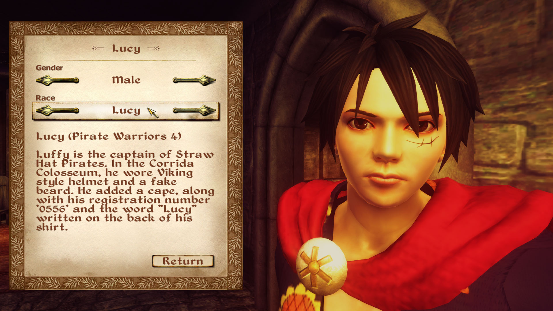 Added Rebecca gladiator armor and Lucy (Luffy in disguise) Dressrosa clothing from Pirate Warriors 4 game.