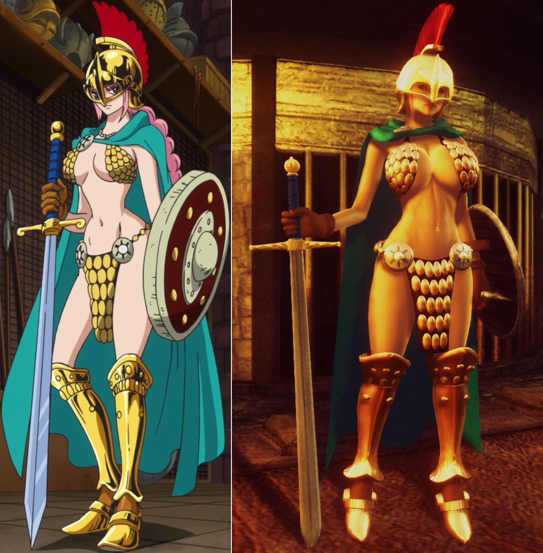 I really love One Piece Series; and especially Rebecca in her gladiator armor.
