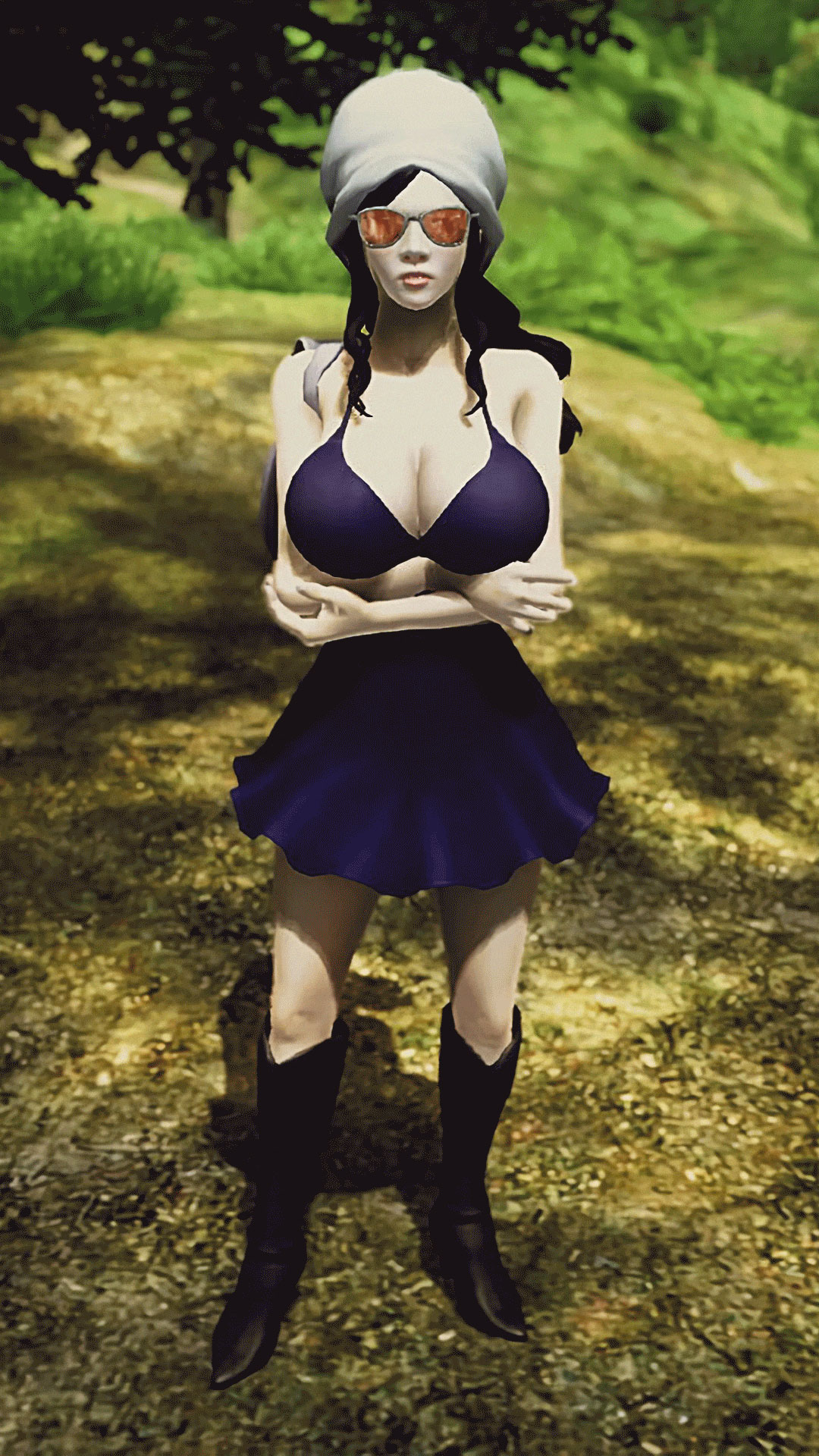 - Her boots will increase her height when equipped (parented to HighHeels.esp mod).