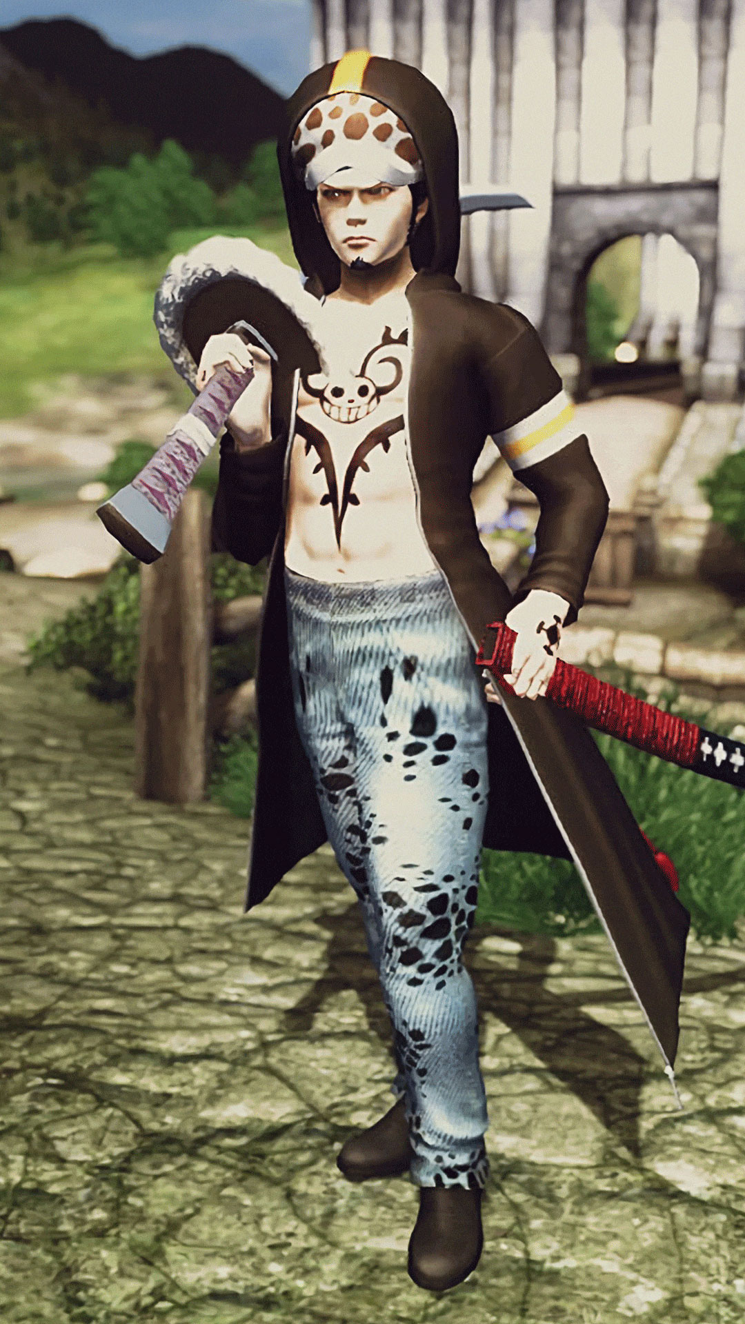 In the end, it dragged me to work on other male character too, such as Law with his weapon and body tattoos, and in v1.3 I worked on Usopp with his sniper HelmetFOV, clothing and weapon.