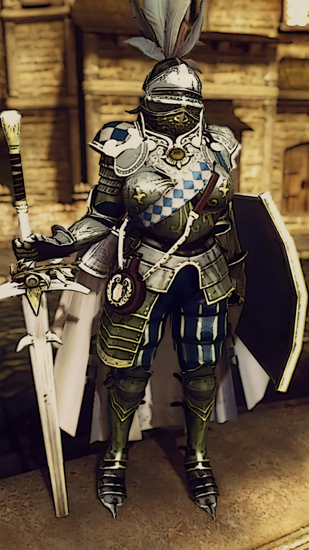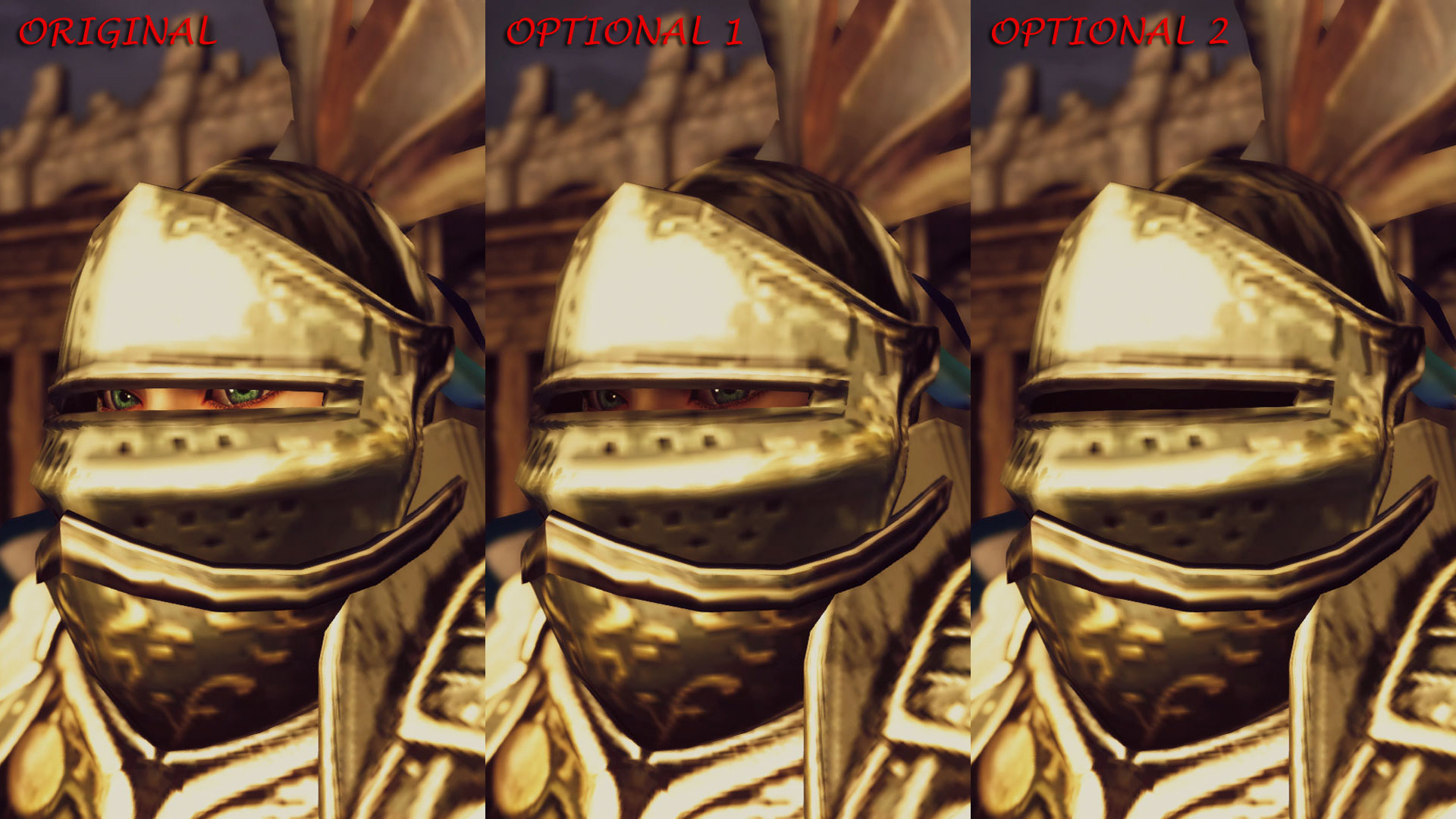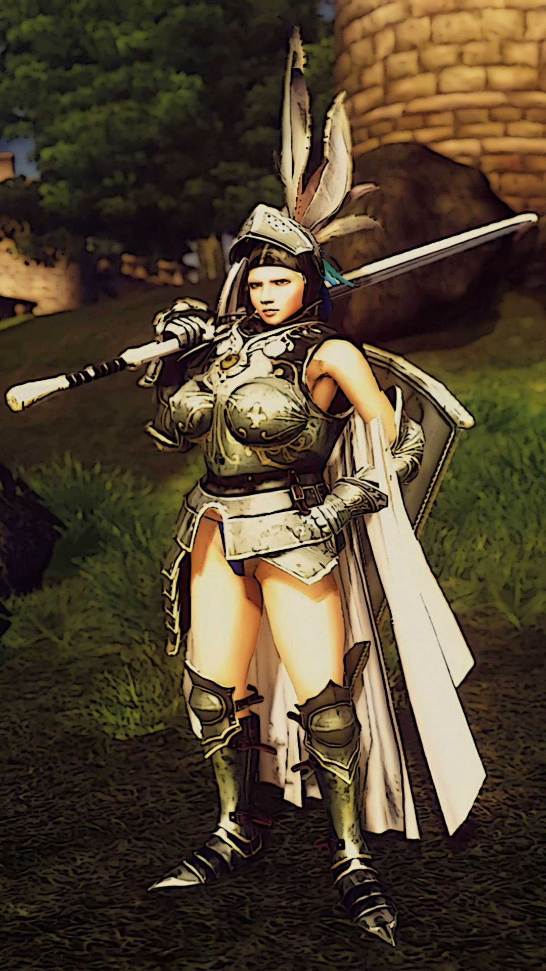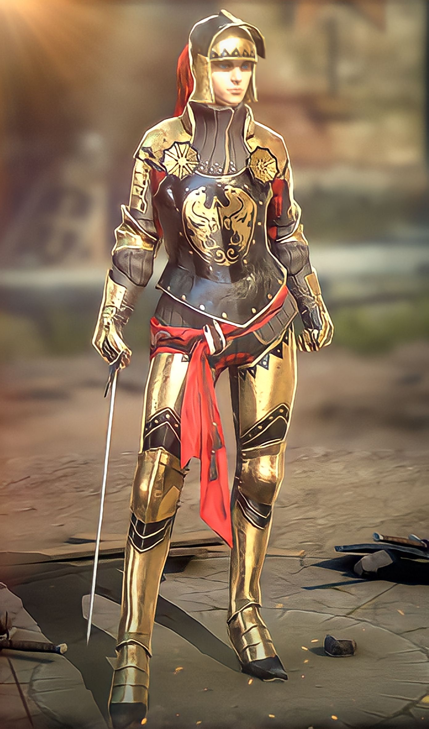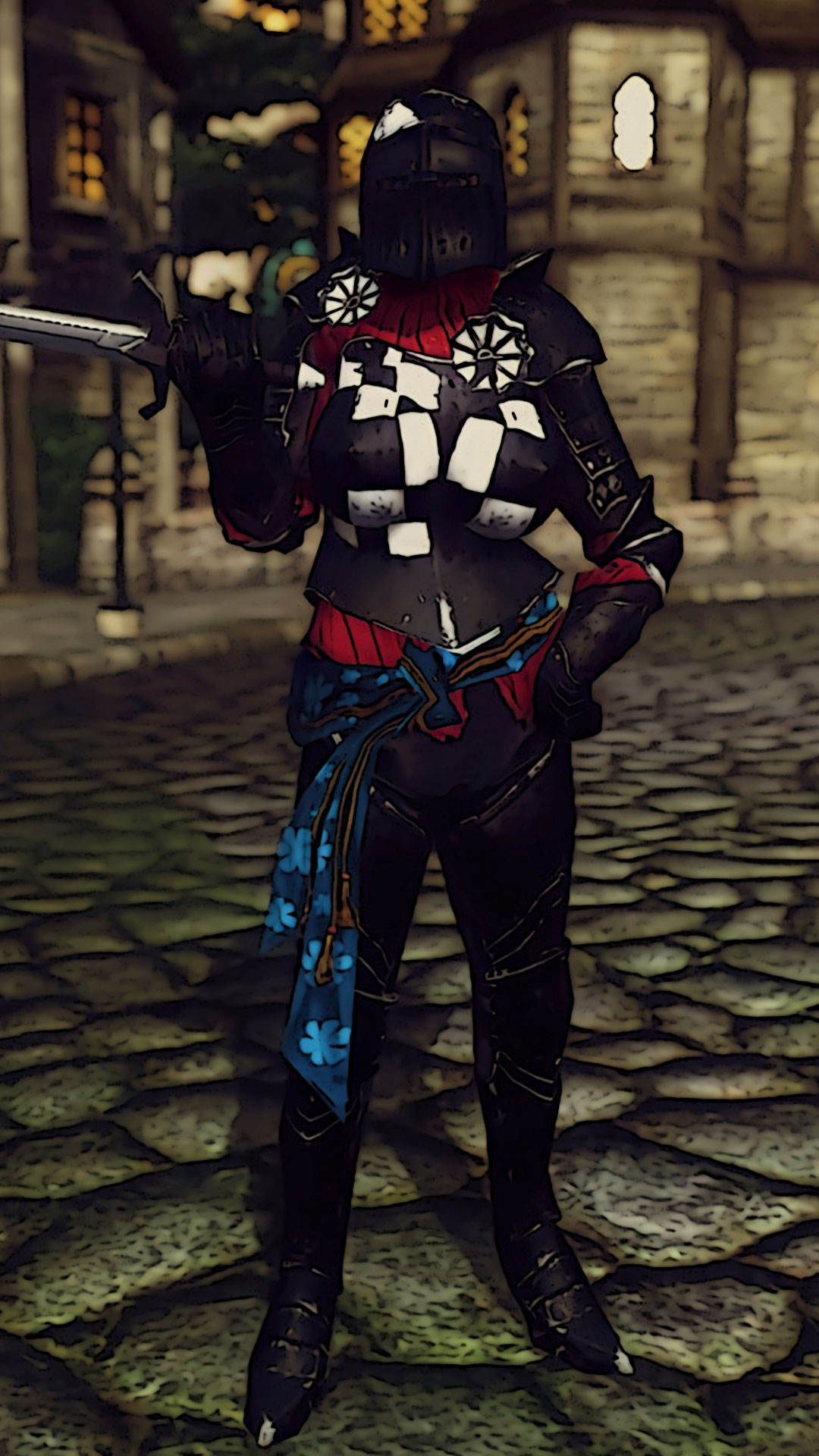For those who have asked if there is a male version, there is a full armor option (NPC Highshield Armor) and Highshield Helmet (open) that can also be used by male characters.