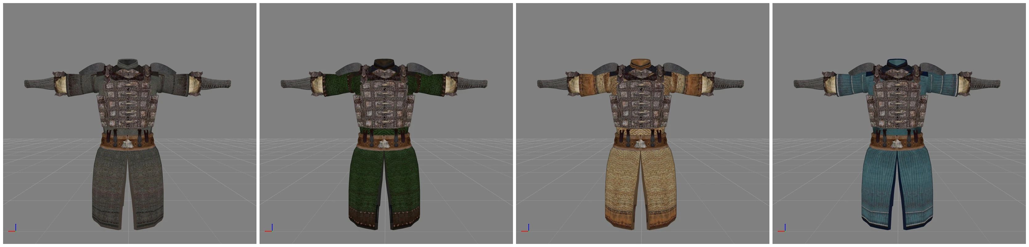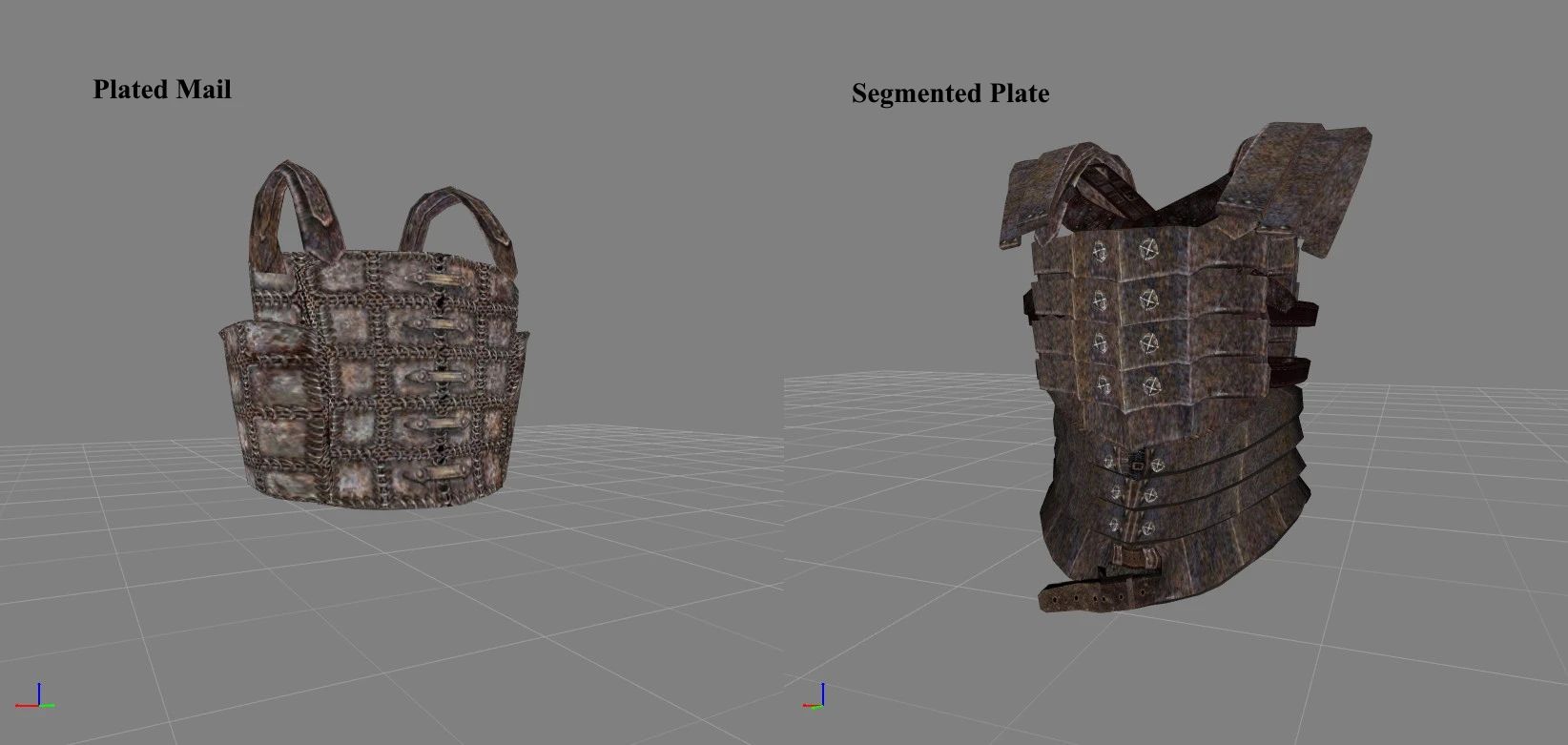 Добавляет новые сетки для сегментированных пластинчатых (тяжелых) и пластинчатых кольчужных (легких) кирас, продаваемых в "Лучшей Защите".
