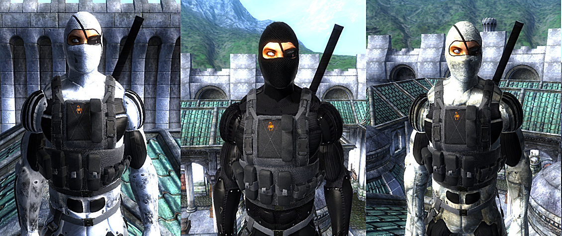 Данный плагин добавляет множество оружия и брони сделанной по мотивам игры "Metal Gear Solid 4". Найти все вы можете в глубинах Вилверина. Так же вы можете купить оружие в "Солдатской удаче", маски и жилеты в "Божественной Элегантности", а доспехи в магазине "Лучшая защита", что в Торговом районе Имперского города.