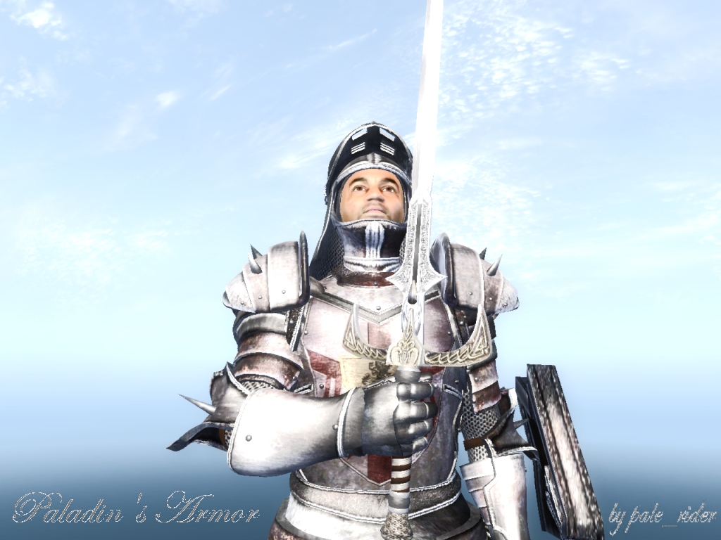 Плагин добавляет в игру раскошные доспехи и оружие паладина. Для того что бы их получить, предется потрудиться: найдите около статуи в Торговом районе Имперского города выпуск Вороного курьера. Прочитайте внимательно и поймете где искать.