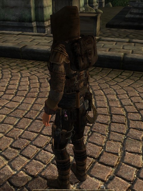 Но штаны просто потрясающие, они настолько атмосферны, что мой вор практически всю игру в них и пробегал (учитывая, что играл за хаджита, особенно кстати была маленькая бутылочка скуумы на боку). И меч очень аккуратно присобачивается к ремню, отлично дополняя шикарный пояс с полным набором различного добра.