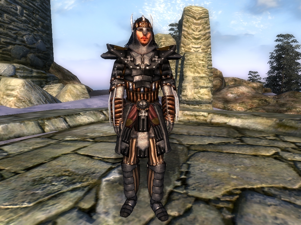 Доспех превосходен и особенно хорошо будет смотреться если поставить плагин, не помню название но там глобальный квест и бои с драконами в Обливионе. Где то видел в интернете?!