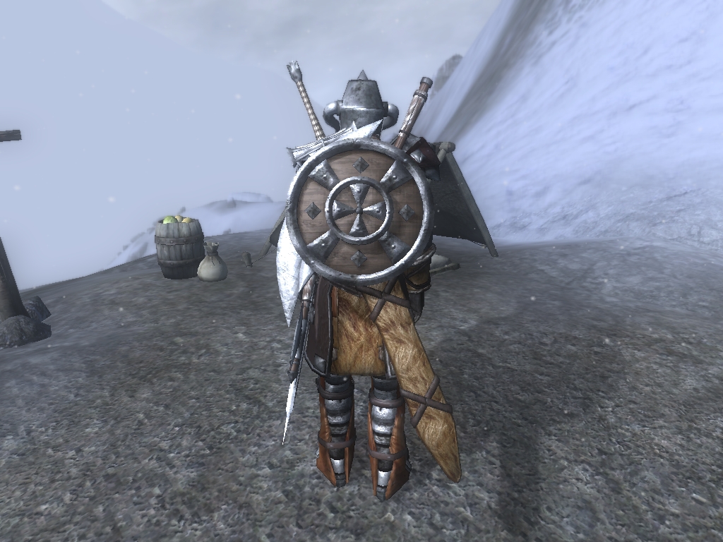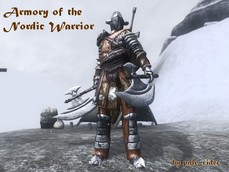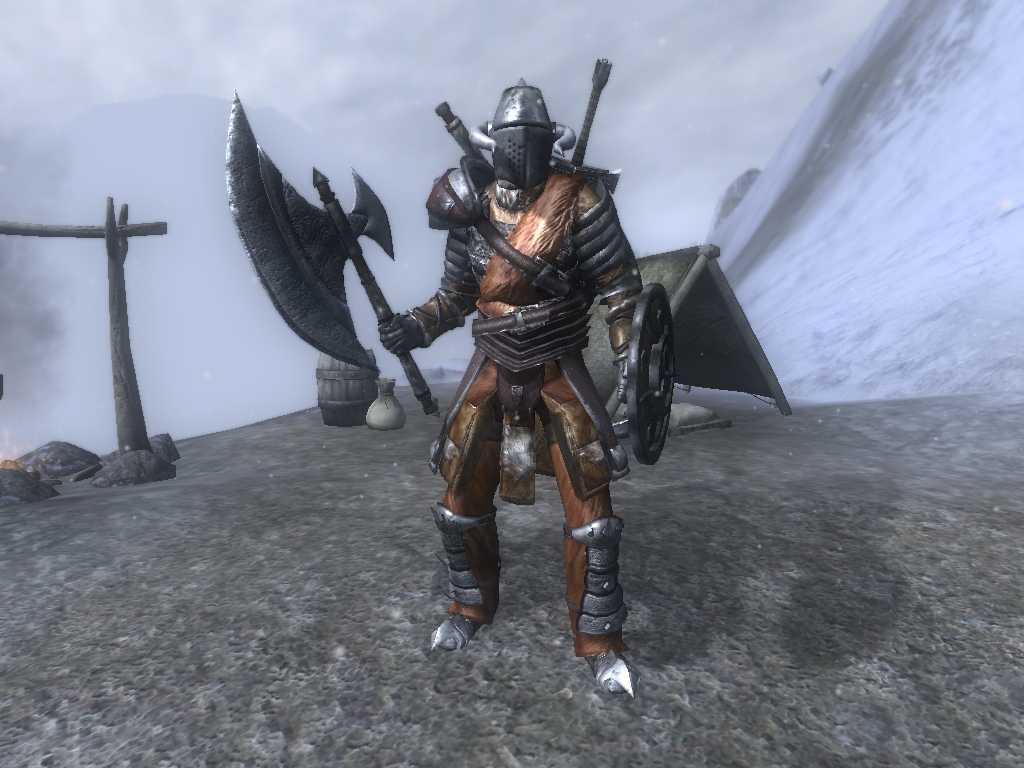 Комплект разнообразных доспехов. Купить можно у Варнадо в магазине "Лучшая защита". Некоторые вещи на слотах брони представляют из себя декоративные ножны и щиты, висящие на спине, они помечены, как (А), что значит аксессуар. Один из топоров помечен, как (З), то есть Защитный.