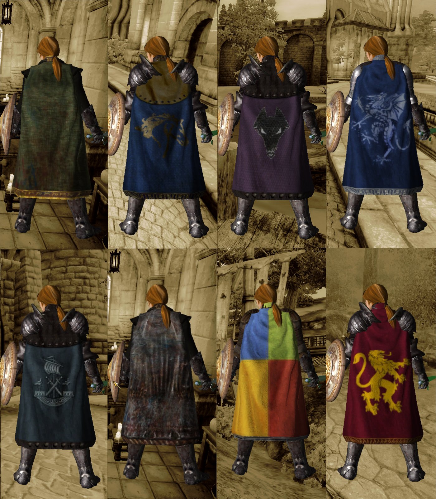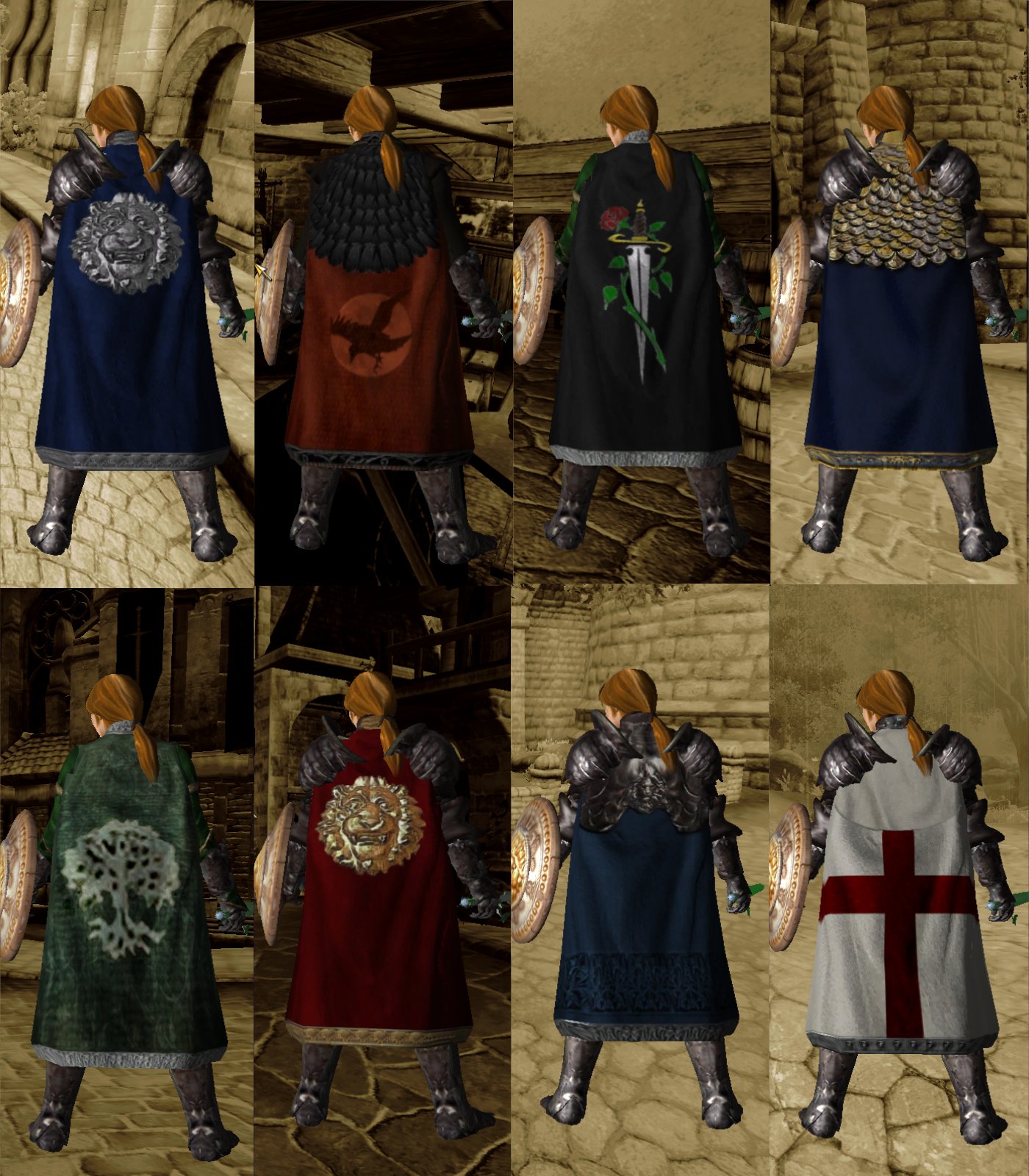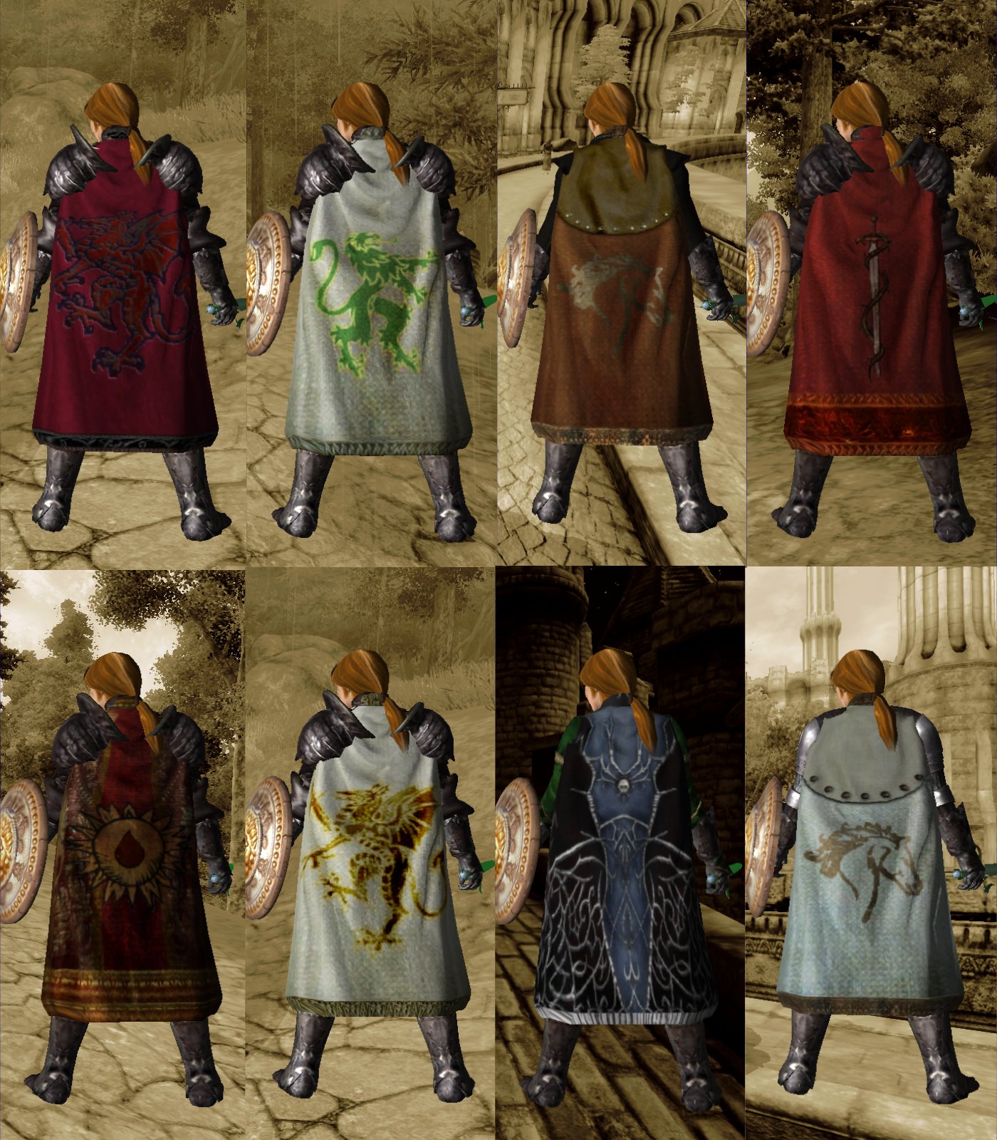 Для лучшей гармонии с дефолтным Обливионом добавлены плащи фракций, которые помогут вам улучшить внешность персонажа, если вы любите отыгрыши ролей, а некоторые плащи сделаны как дополнение к дефолтным сетам брони и одежды.