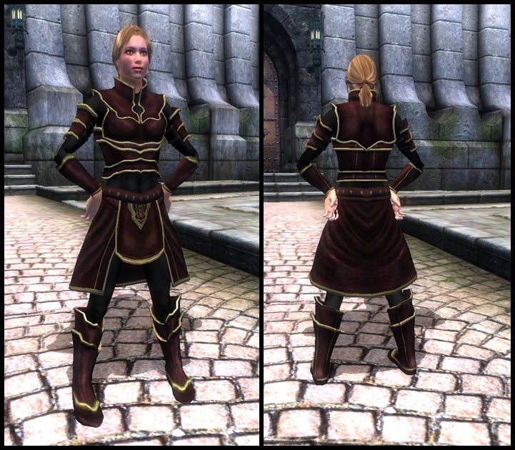Хорошие легкие доспехи в трех расцветках для магов. Красные, черные и стилизованные под эбонит. Подходят как мужчинами, так и женщинам. По защитным характеристикам аналогичны легким митрильным доспехам. Найти вы их сможете в сундуке за магазином “Миротворцы Морвейна” в Анвиле.