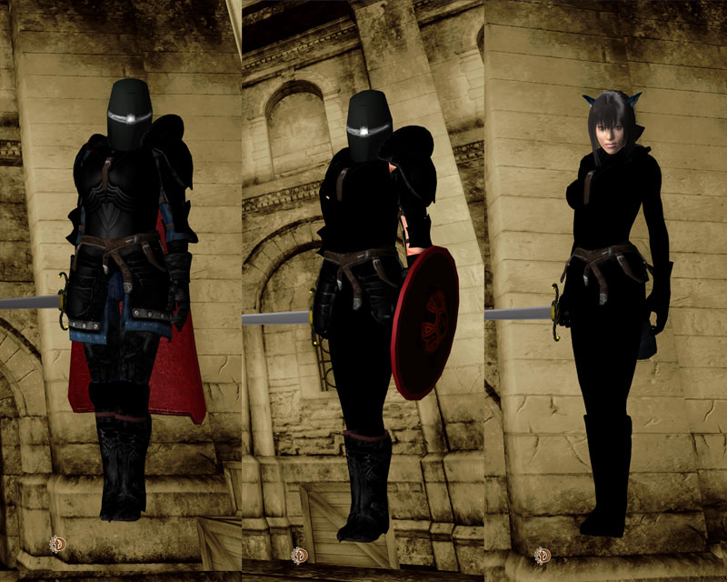 Расширенный набор cтальной черной брони. Мужская версия доспехов - классическая броня, а женская - несколько нестандартная, основанная на моделях Growlfa (Hot Clothes and Armor). Женская броня предназначена для тел от Exnem. Рекомендую использовать Nude-версию, хотя если вы не будете одевать обнаженную версию брони, проблем возникать не должно. Читайте ридми, чтобы узнать где достать оружие и зачарованную версию брони.