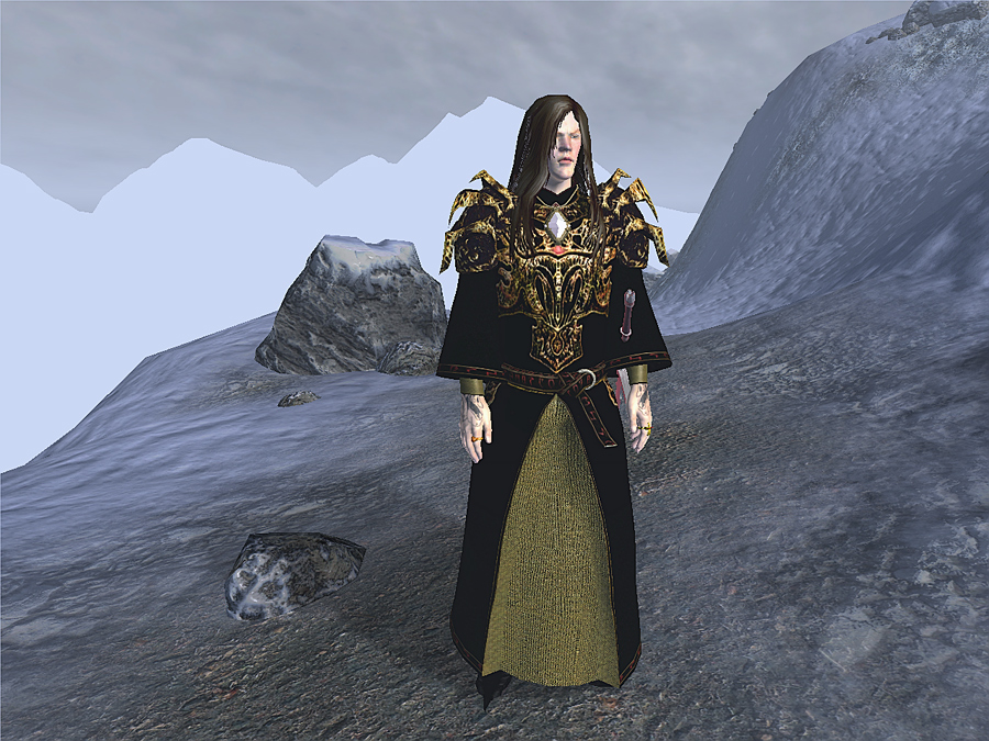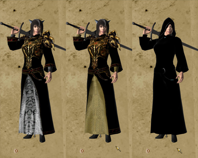 Это комплект Королевских роб и оружия, подходящий для высокоуровневых Паладинов, Рыцарей, Боевых магов, и всех прочих, кто хочет выглядеть по-королевски. Женские версии используют модели тел exnem.