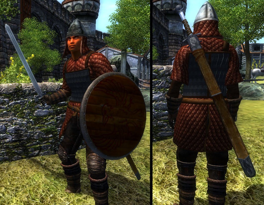 Данный плагин добавляет в игру новый комплект доспехов. Броня подойдет как женскому, так и мужскому персонажу. Доспехи представлены в двух версиях: улучшенной и обыкновенной. Купить их вы можете в магазине "Огонь и сталь" у Рашеды, в Корроле.