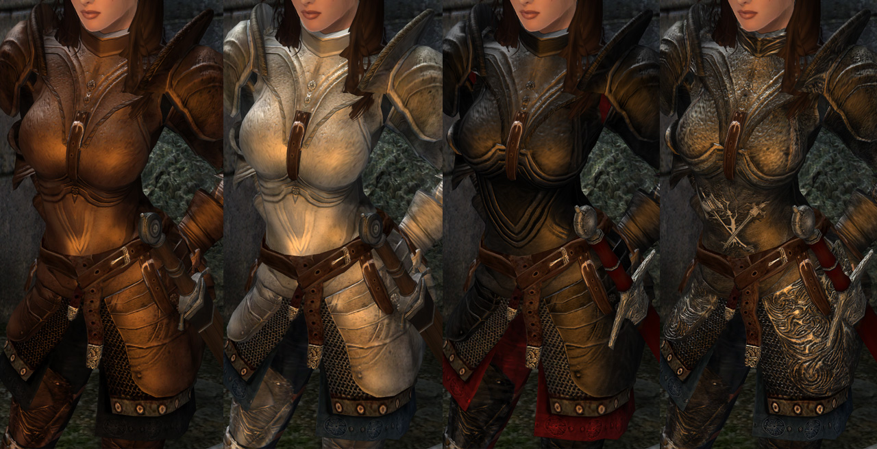 Этот плагин заменяет модели стальных доспехов и доспехов "Чёрного Леса", делая их женские версии более женственными. Также добавлены новые щиты, маски, полумаски, а также новые наборы брони (муж. и женск. версии).