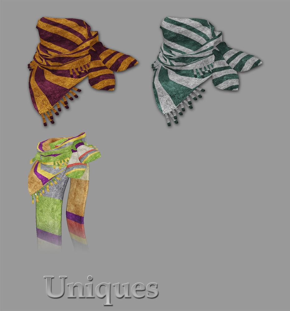 Шарфы используют слот амулета. Шарфы с маской могут неправильно отображаться на орках или зверорасах, а потому лучше использовать для них версию без маски.