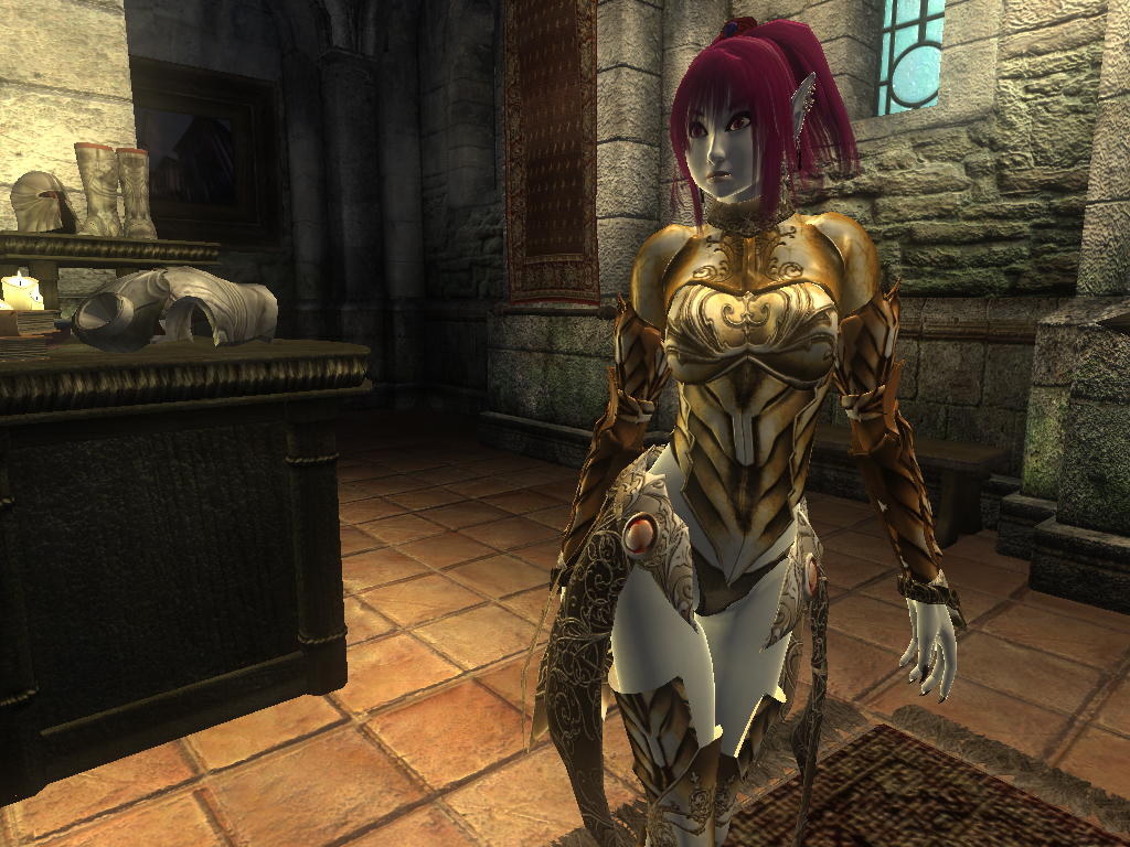 Несколько сетов королевской брони, тяжелой и легкой, в четырех цветах, с разными вариантами верха и низа. Всё великолепие можно приобрести в "Лучшей защите" в торговом районе Имперского города.