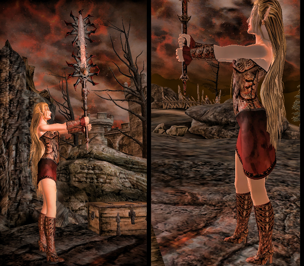 Новая броня только для дам - даэдрический легкий костюм. Найти можно возле Кватча, у врат в Обливион. Соответственно, моды, резко меняющие эту местность, могут конфликтовать с плагином. Для тел Fantasy Figures.