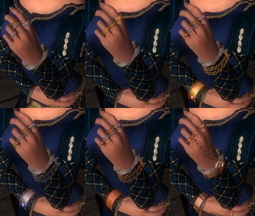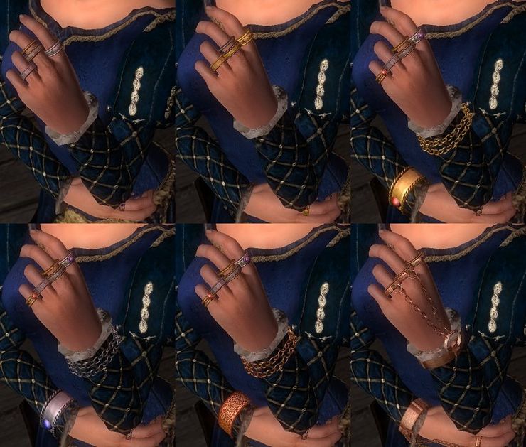 Большое количество украшений от Kalikut. По сути, это моддерский ресурс, однако все браслеты присутствуют в игре. Вы можете найти их в бочке за плавучей таверной на Уотерфронте.