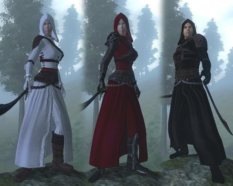 Броня ассасина в восточном духе словно переносит нас в жаркие пустыни и дворцы шахов, полные интриг. Одеяния трех цветов для мужчин и женщин.