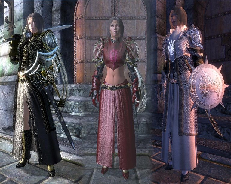 Большой впечатляющий набор брони и оружия Черного блеска. Светлые, темные и красные доспехи, разнообразные щиты...