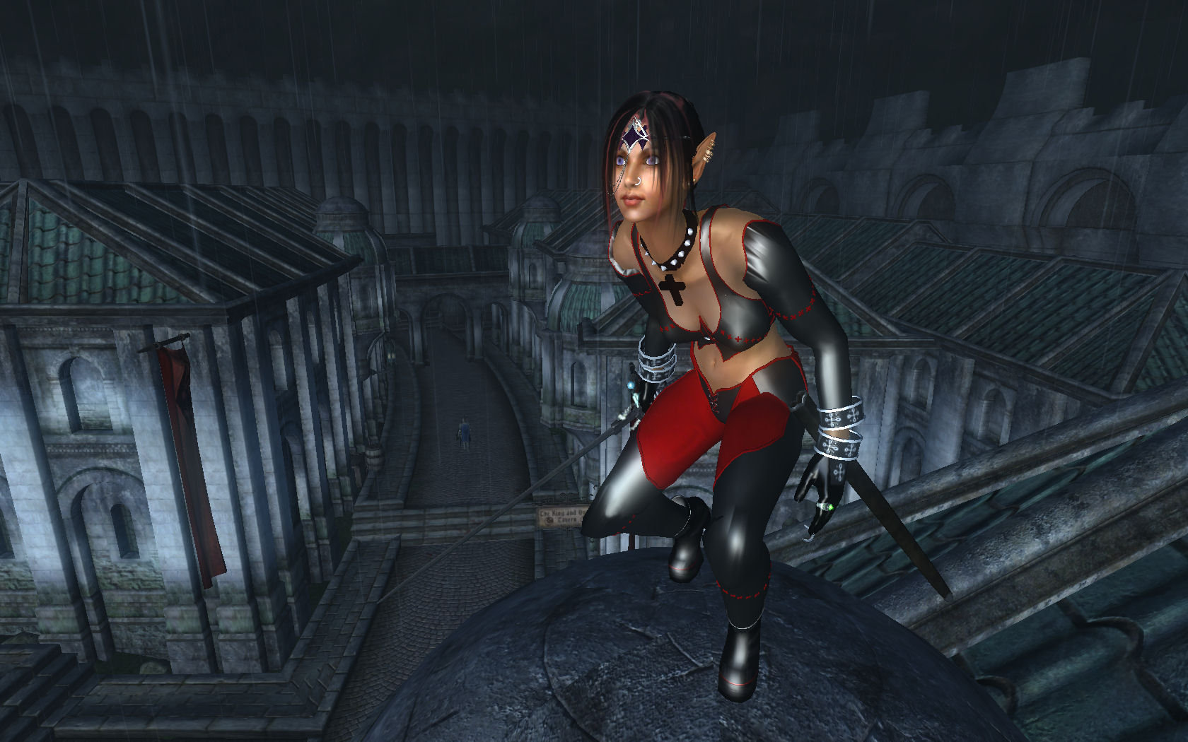 Костюм Бладрейн, всем известной шикарной вампирши из одноименной игры. Наслаждайтесь! Найти его вы сможете у входа в пещеру "Замковый камень", к западу от Брумы.