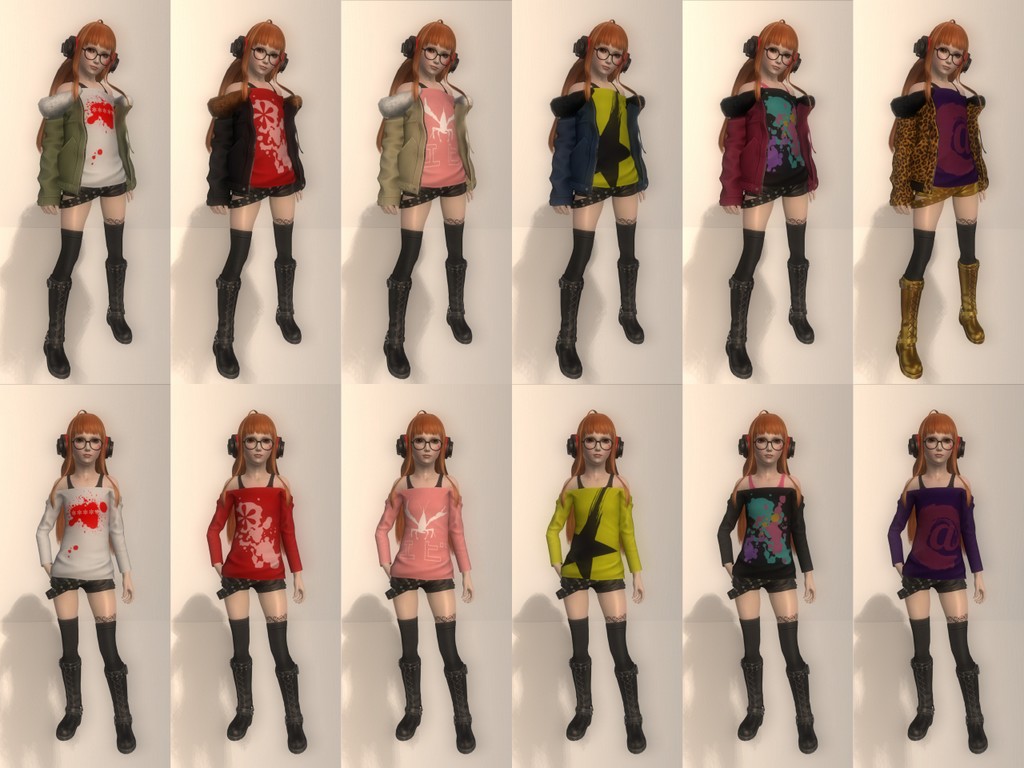 Одежда Футабы Сакуры (Futaba Sakura) -NAVI- из аниме Persona 5. Мод не лорный. Одеяние сделано в двух вариантах - полный комплект с курткой, и отдельно верх (без куртки), низ (шорты и чулки) и сапоги в двух цветах. Доступно большое количество цветов и рисунков на одежде. Есть наушники и очки в разных комбинациях (занимают слот амулета), парики в двух вариантах (второй вариант находится в дополнительной папке мода).