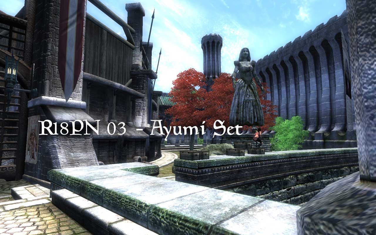Данный плагин добавляет в игру доспехи и оружие Аюми из X-Blades. Доспехи выполнены в трех различных расцветках: красной, черной и белой. Найти их вы можете в районе Арены Имперского города, в сундуке. В папке Optional Files лежат файлы анимации использованные для снятия скриншотов.