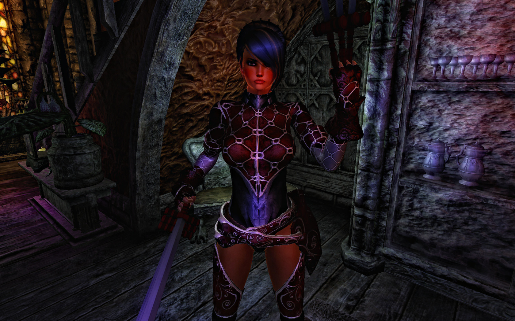 Мод добавляет экипировку Рэйчел из игры Ninja Gaiden и броню Боевого мага. Комплекты сборные и состоят из нескольких частей, которые можно комбинировать между собой. Найти все вы можете в сундуке у стойки продавца, в магазине "Солдатская Удача", что в Торговом районе Имперского города. В папке Optional Files лежат модели, делающие костюм Рэйчел более открытым.