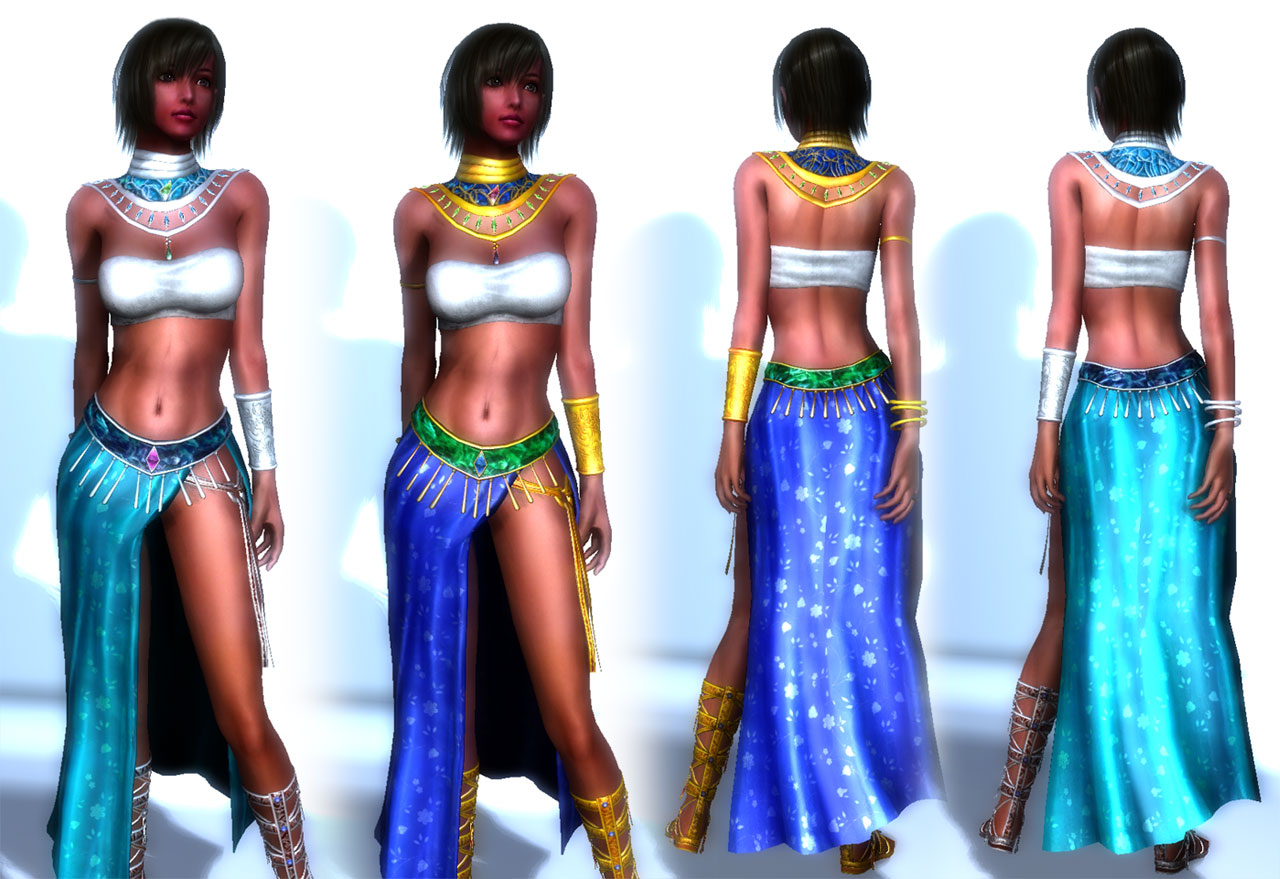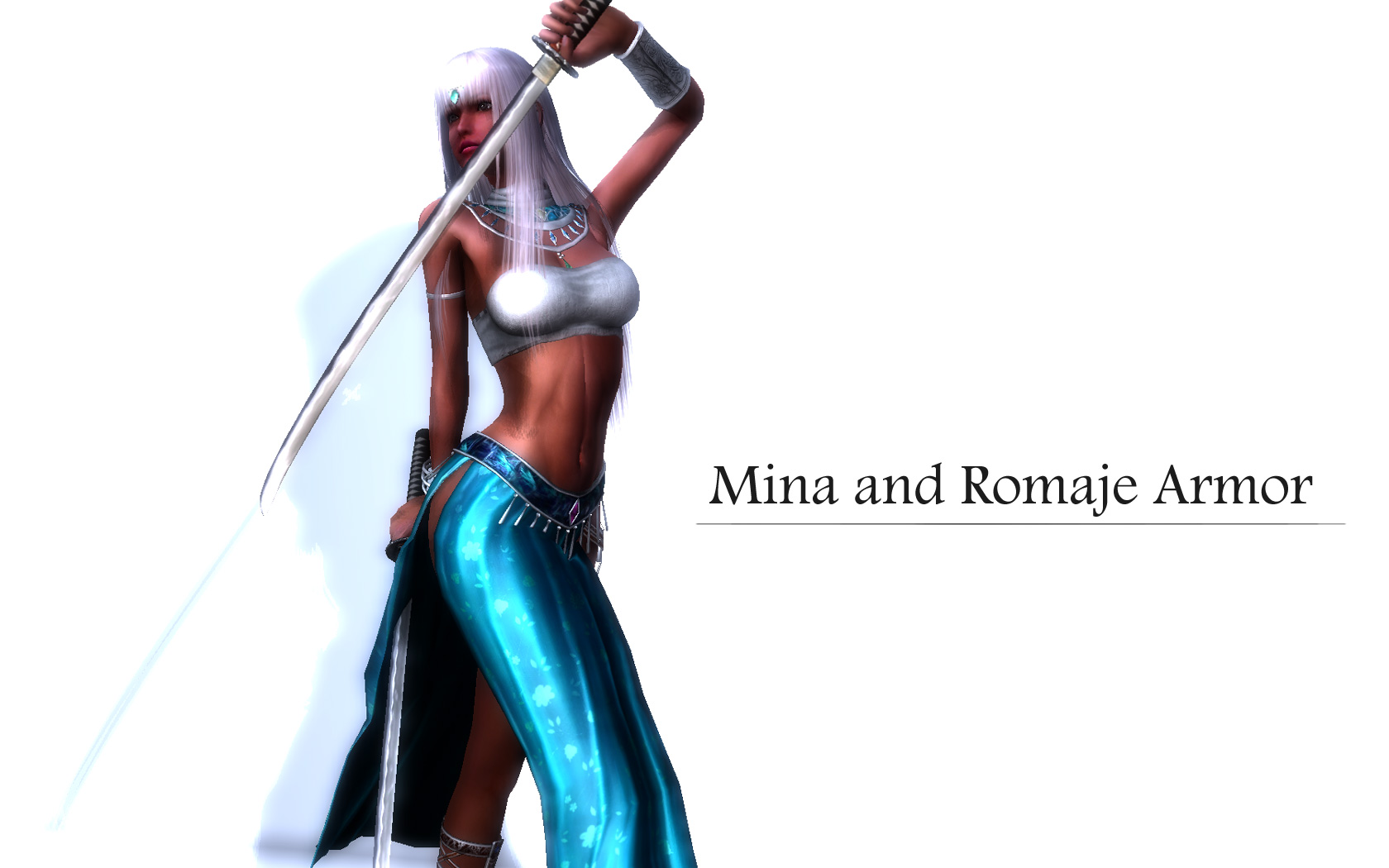 Плагин добавляет в игру одежду Мины и Ромадж, вещи выполнены в двух цветовых решениях. Костюм Мины - это одеяние девушки-лучницы. Специальная перчатка, мягкие сапоги, легкая туника, головной убор и юбка. Одежда Ромадж - сандалии, элегантная юбка и экзотический топик. Найти вещи вы можете в районе Арены Имперского города, в сундуке.