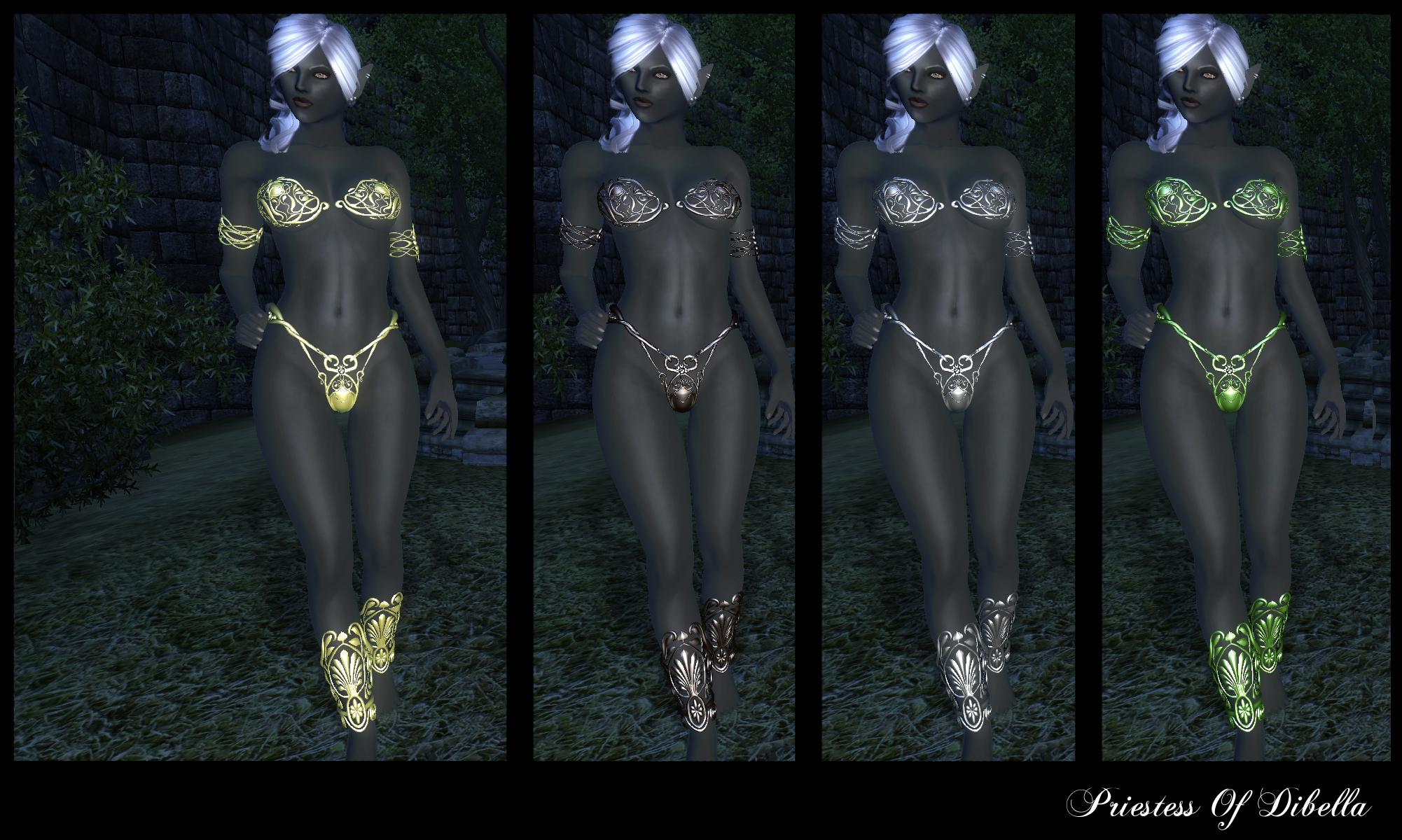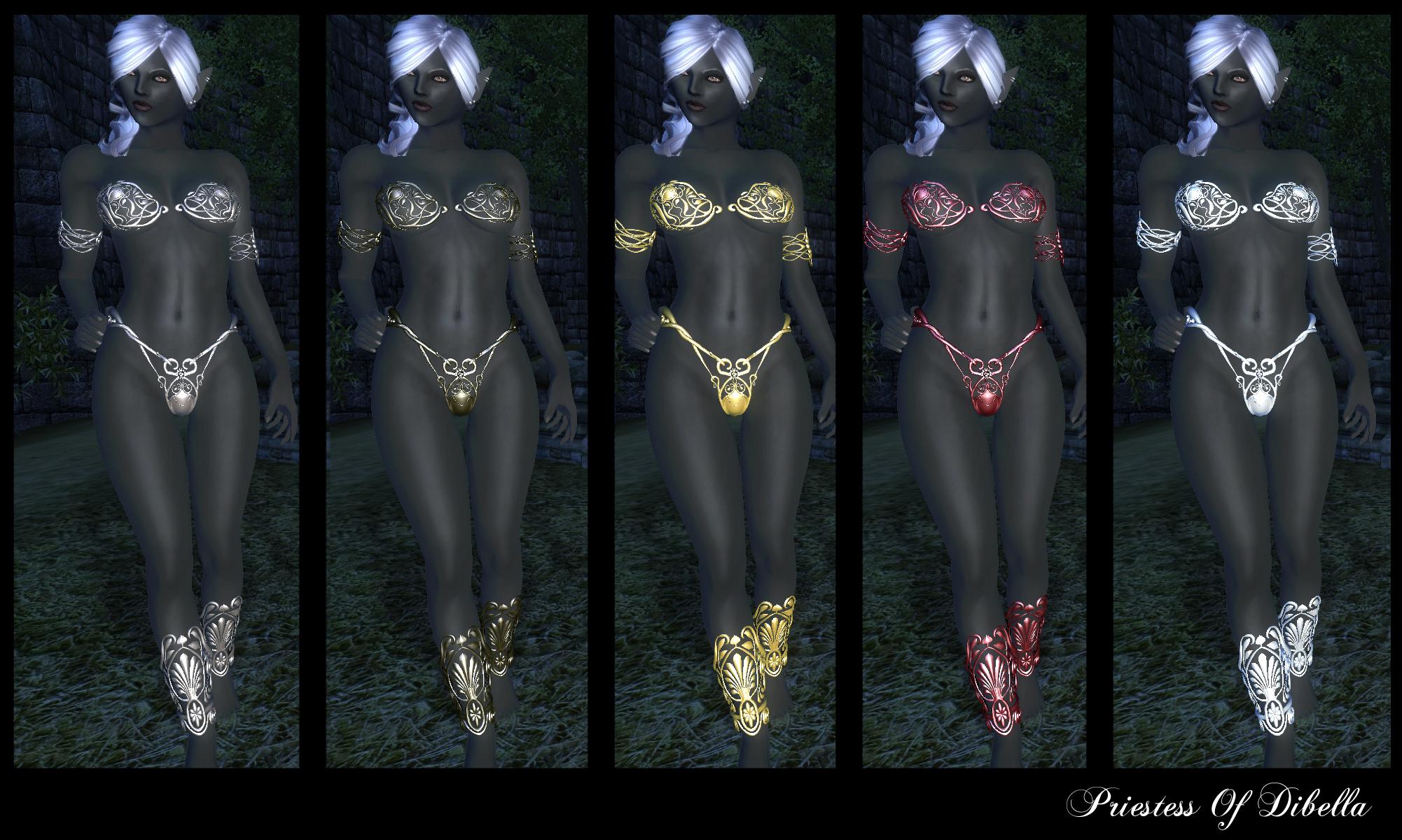 Комплекты брони Жрицы Дибеллы изготовлены из разных материалов, и соответственно, имеют разный вид. Вы можете найти эту утонченную броню в сундуке возле статуи Дибеллы в Анвиле.