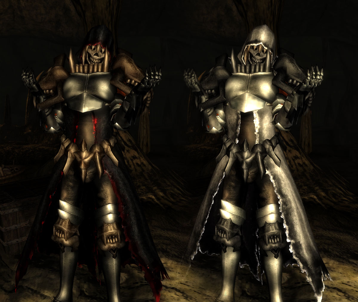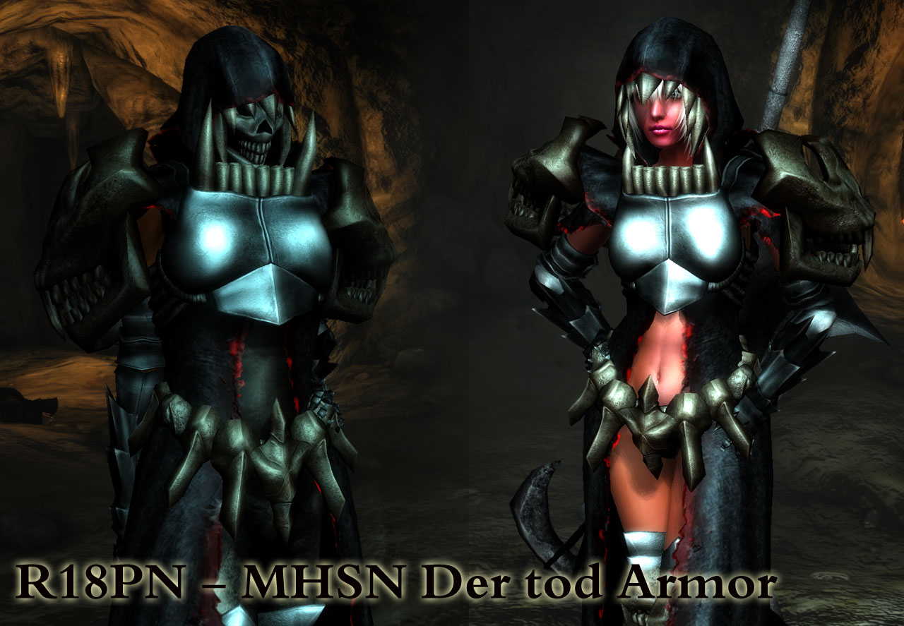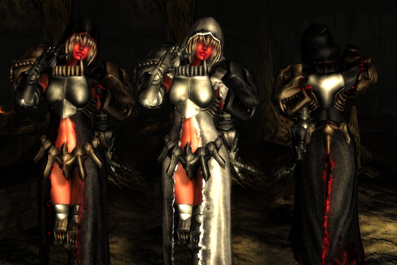 Мод добавляет в игру доспехи смерти из Monster Hunter. Броня представлена в двух расцветках: черной и белой. Помимо брони плагин добавляет несколько капюшонов, сделанных специально под данный комплект доспехов. Найти вещи вы можете в районе Арены Имперского города, в сундуке.