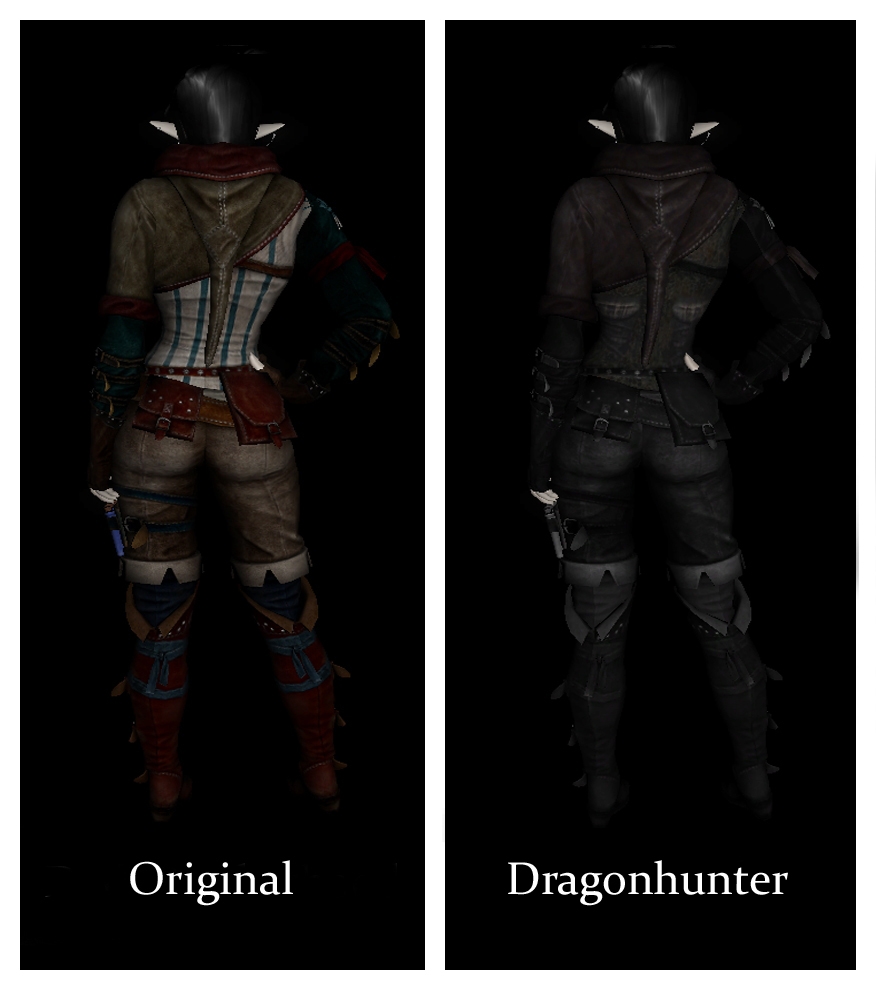 Игра не воспринимает это как броню - раз. Единый комплект в один слот - два. А так очень красивенько, разделили бы и добавили функцию легкой брони - отличный был бы мод.