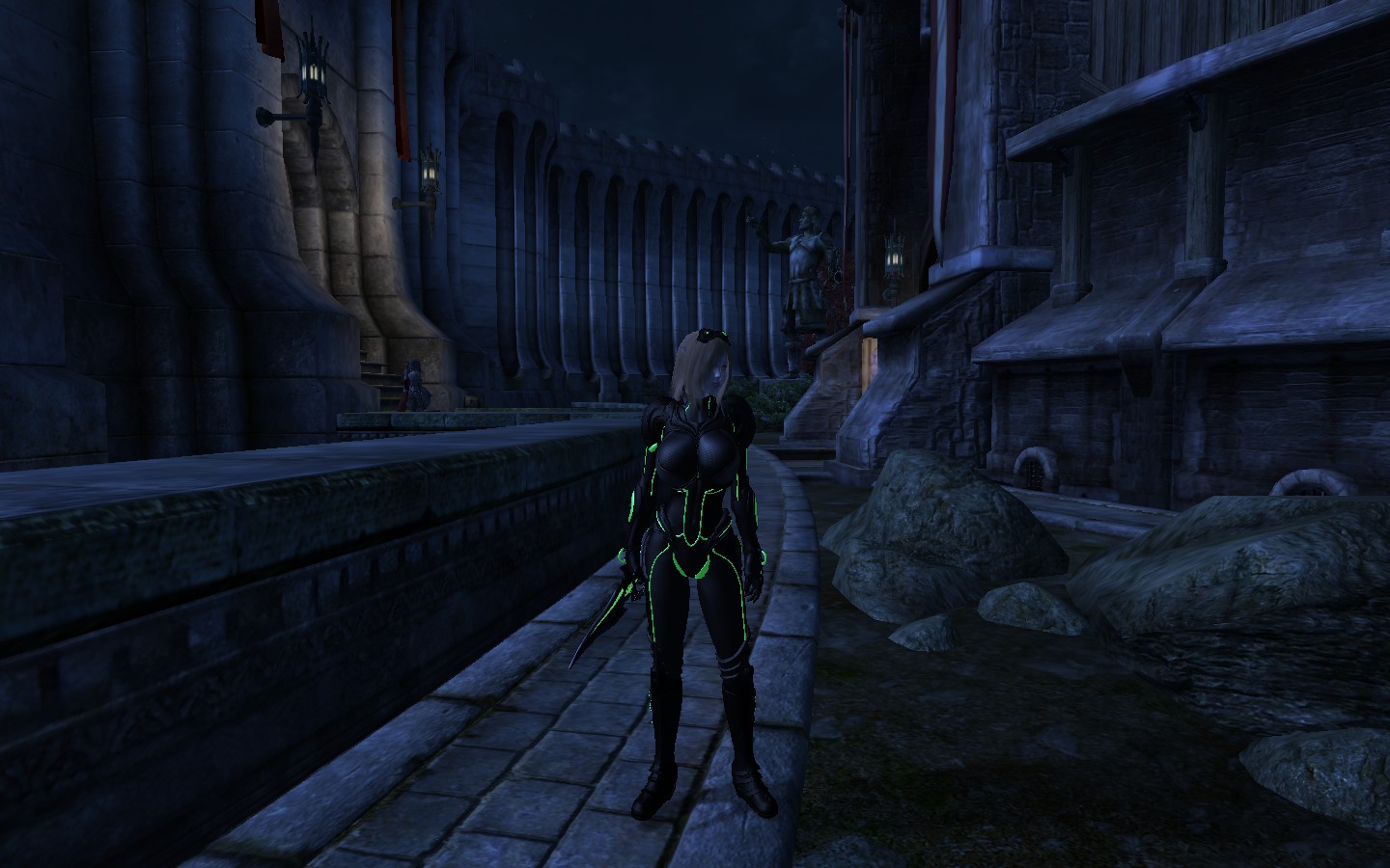 Броня и оружие Призрака (светлая и темная, с блеском и без). Сундук в районе Арены Имперского города, возле статуи.