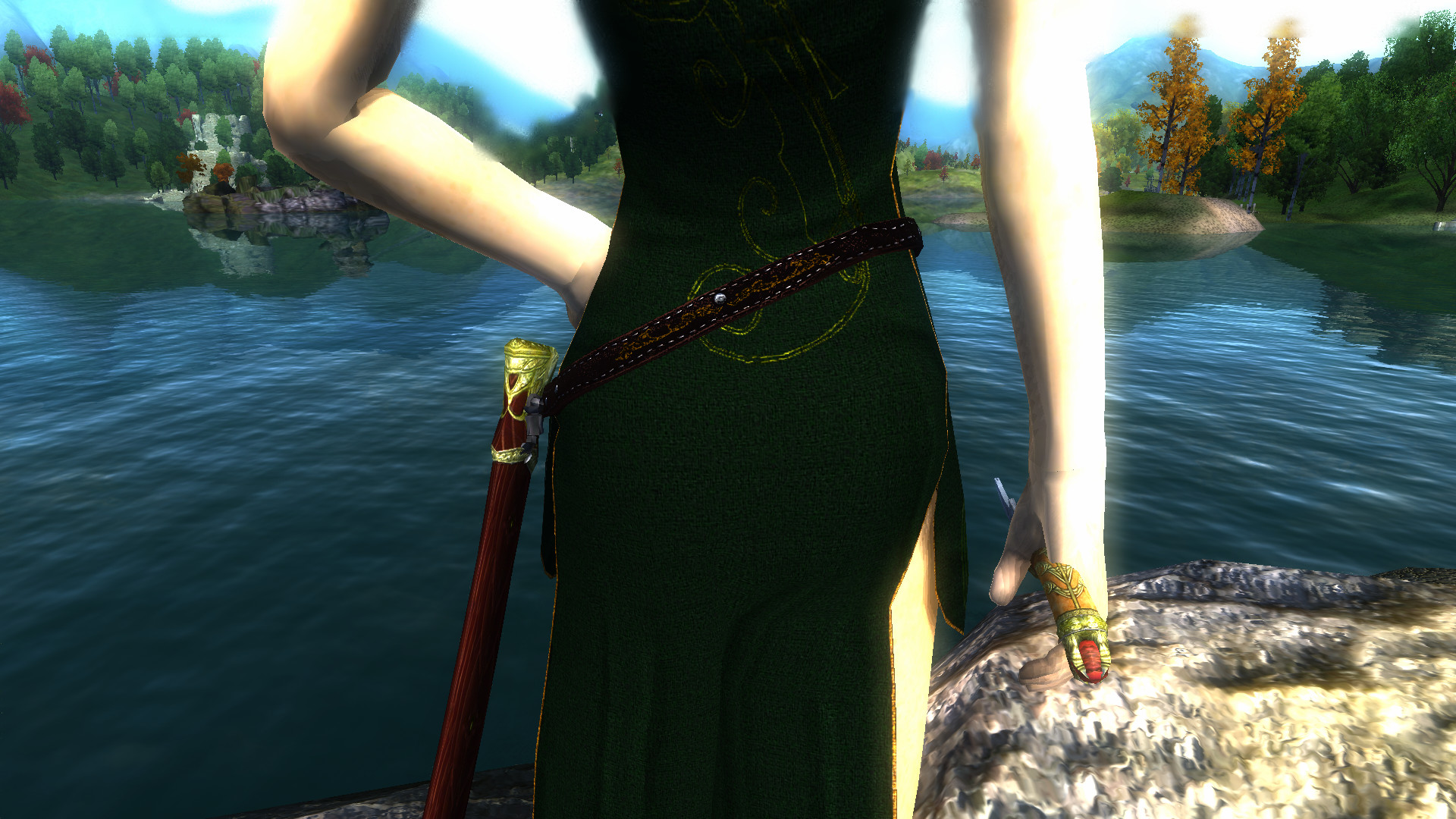 Вариант с ремнями позволит вашему кинжалу, мечу и колчану выглядеть полноценной деталью экипировки, а не парить в воздухе отдельно от тела.