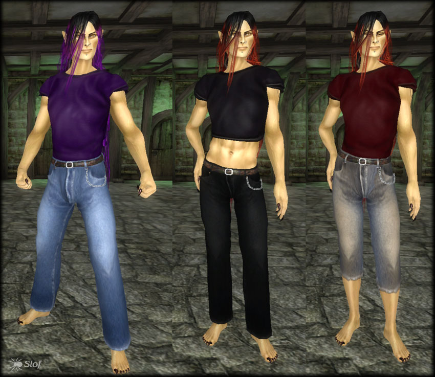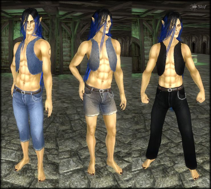 Тетя Слоф продолжает нас радовать своеобразными для мира и сеттинга вещами. В этот раз это чудесно сделанные джинсы, футболки, шорты, жилеты во множестве вариаций. Загляните в магазин "Божественная элегантность", что в Торговом районе, Имперского города.