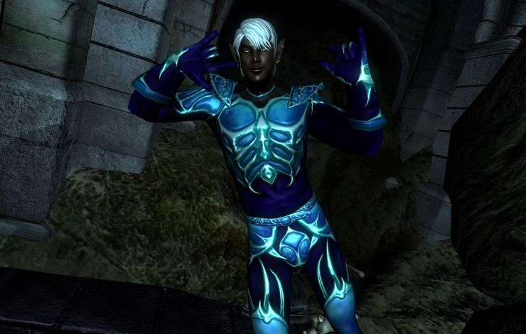 Примерила на своего персонажа. Выглядит доспех просто как раскрашенное трико.