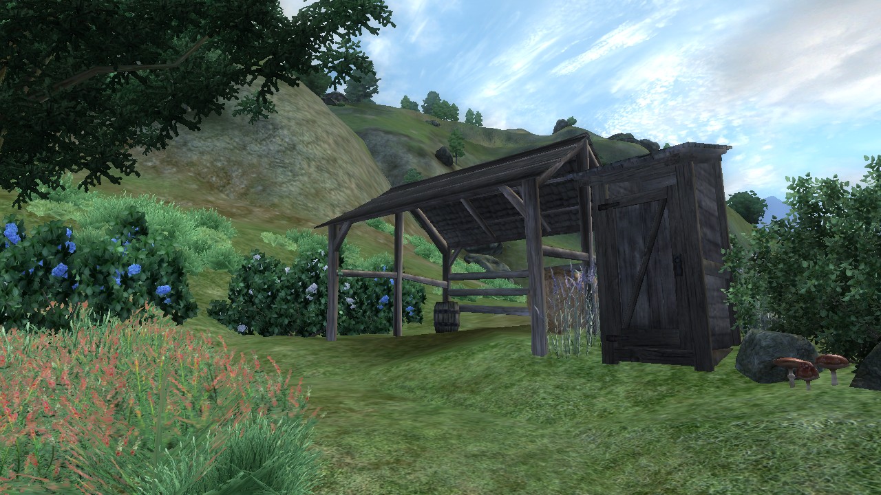 Коттедж сделан на основе одной из новых моделей домов Stroti. Он удобен для компаньонов, хорошо вписывается в игру и просторно обставлен, несмотря на относительно небольшие размеры. В доме находятся две кровати и много места для хранения — 26 необновляющихся контейнеров в основной зоне и 52 - в подвале. Также есть небольшой сад, конюшня и реместленное оборудование.