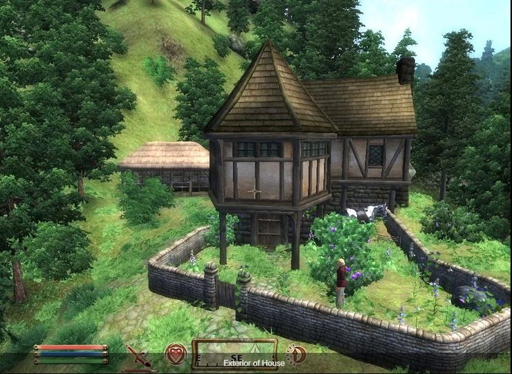 Красивый коттедж идеально подойдет начинающему алхимику, коллекционеру книг, художнику или просто усталому путешественнику, который ищет уютный дом, где можно отдохнуть. Двухэтажный коттедж полностью меблирован в соответствии с потребностями искателя приключений. Также имеется небольшой подвал, в котором можно разместить все ваши самые ценные трофеи.