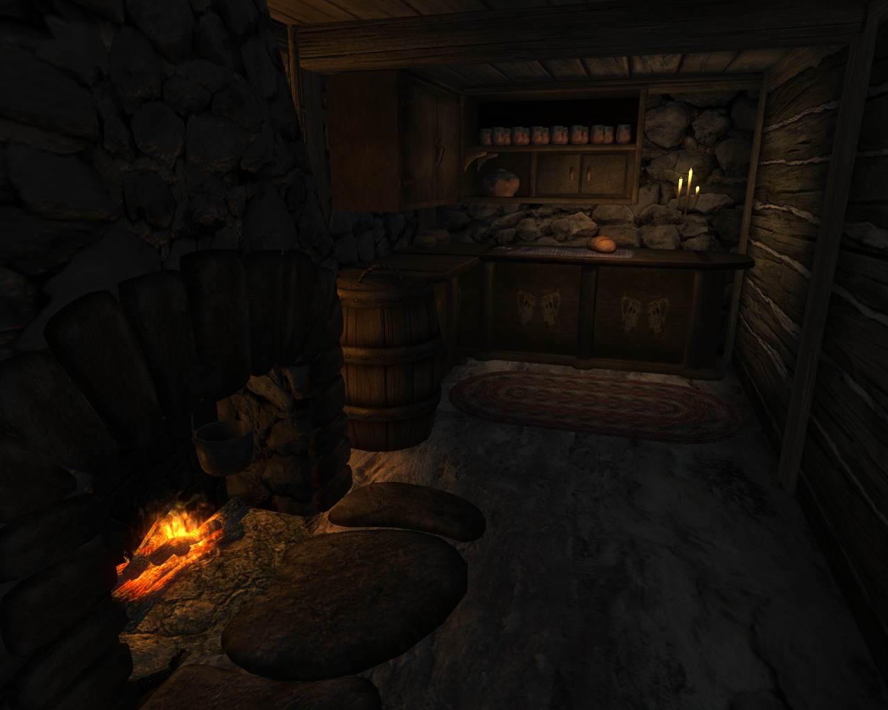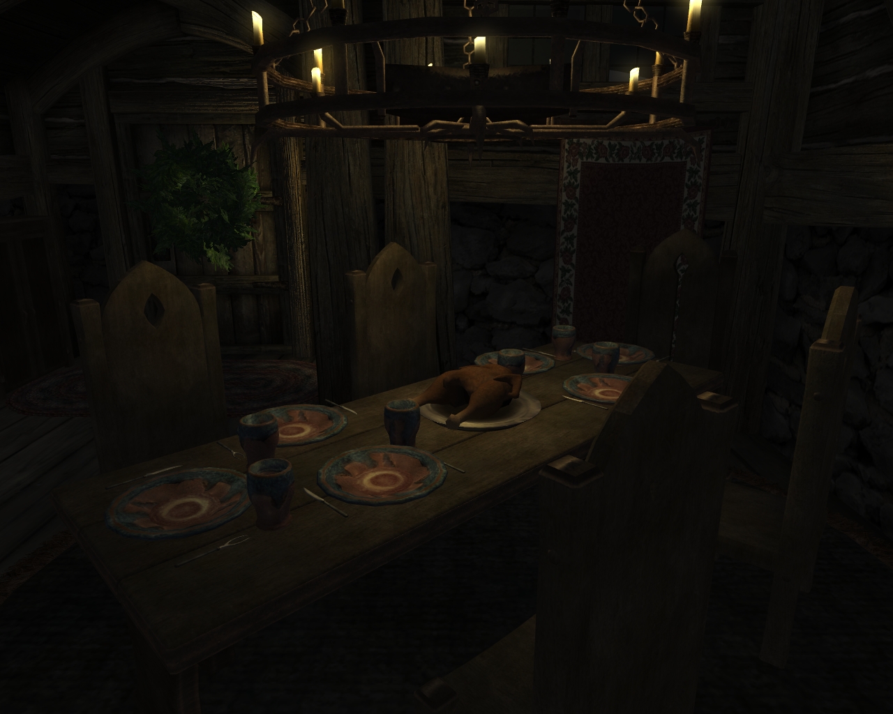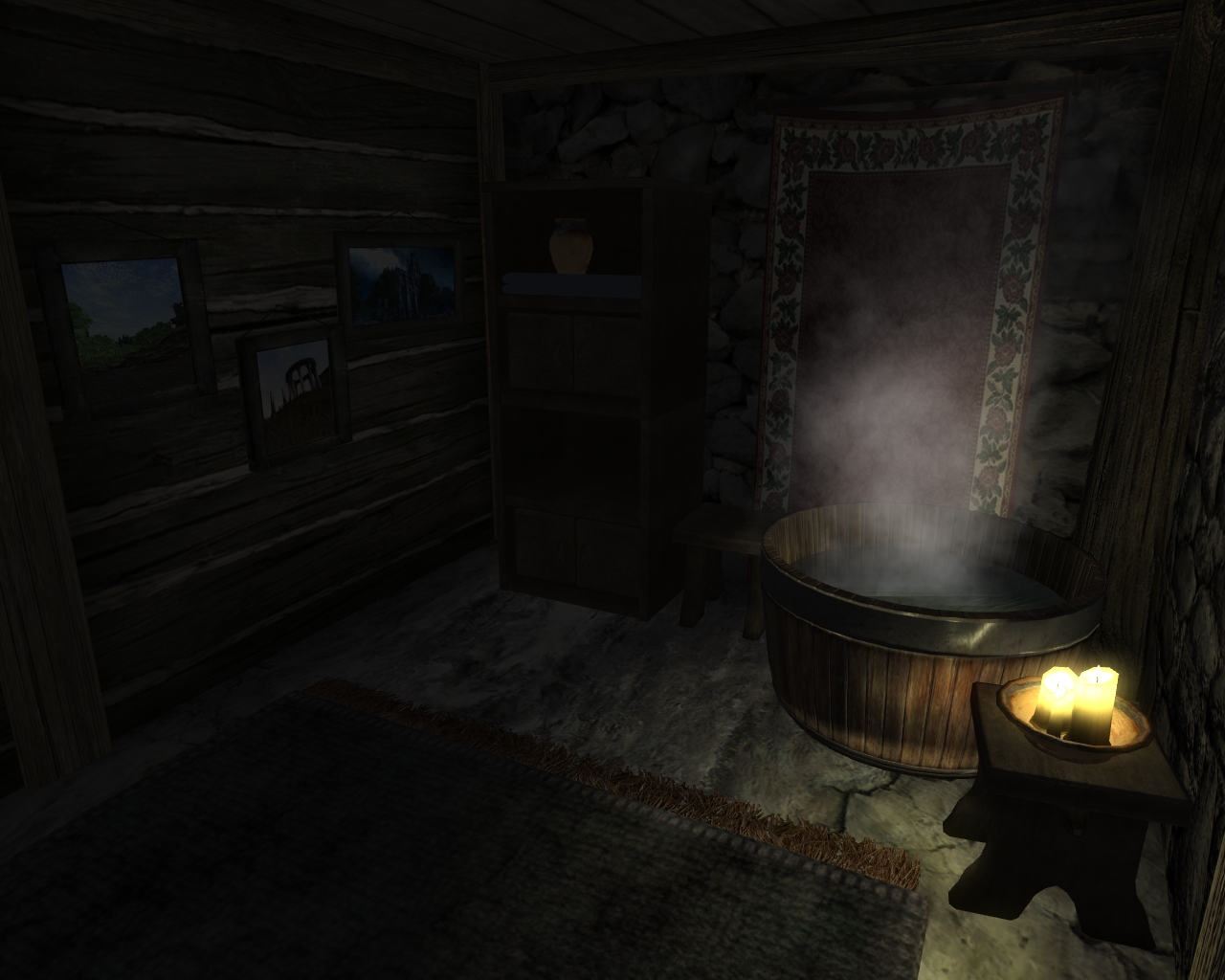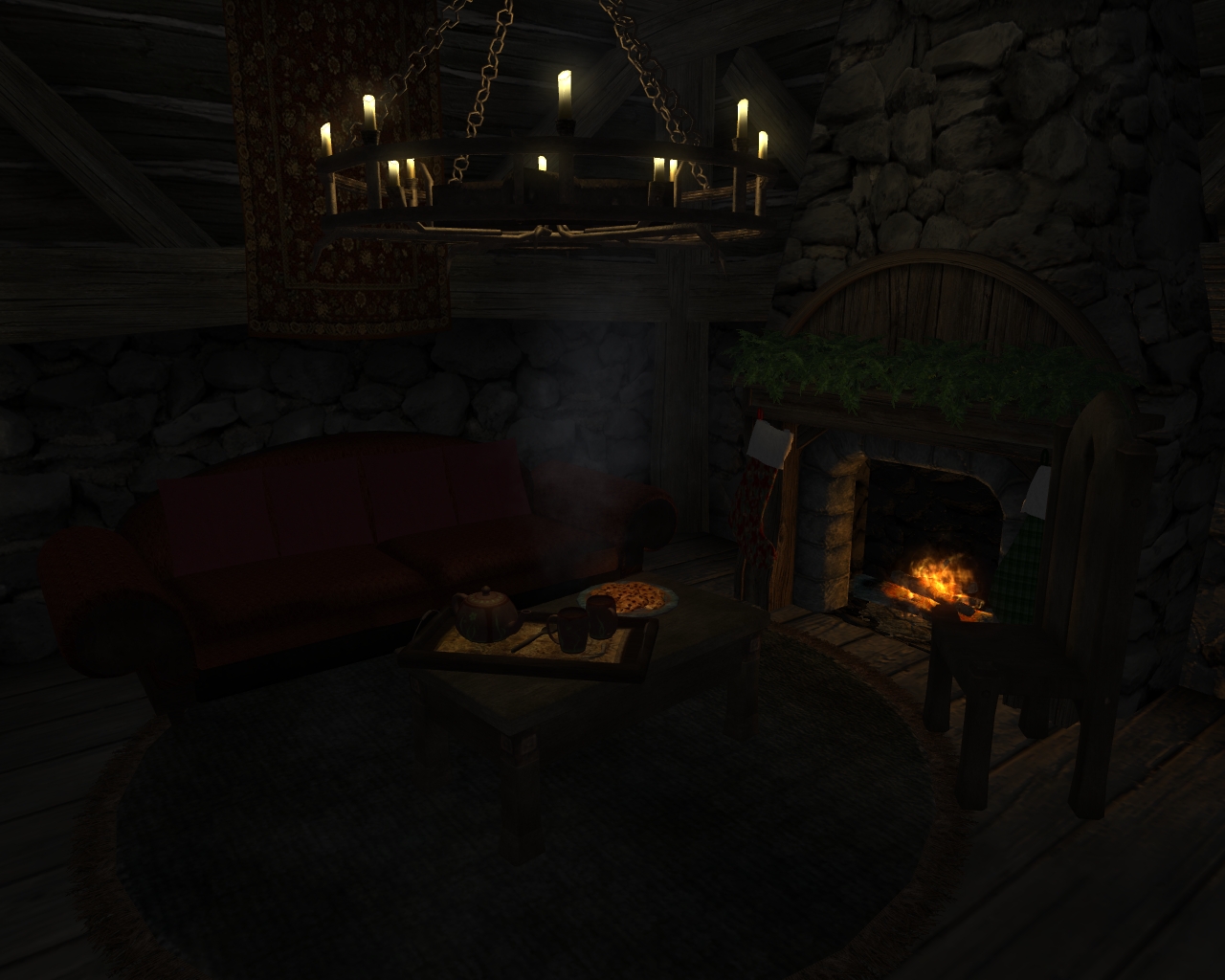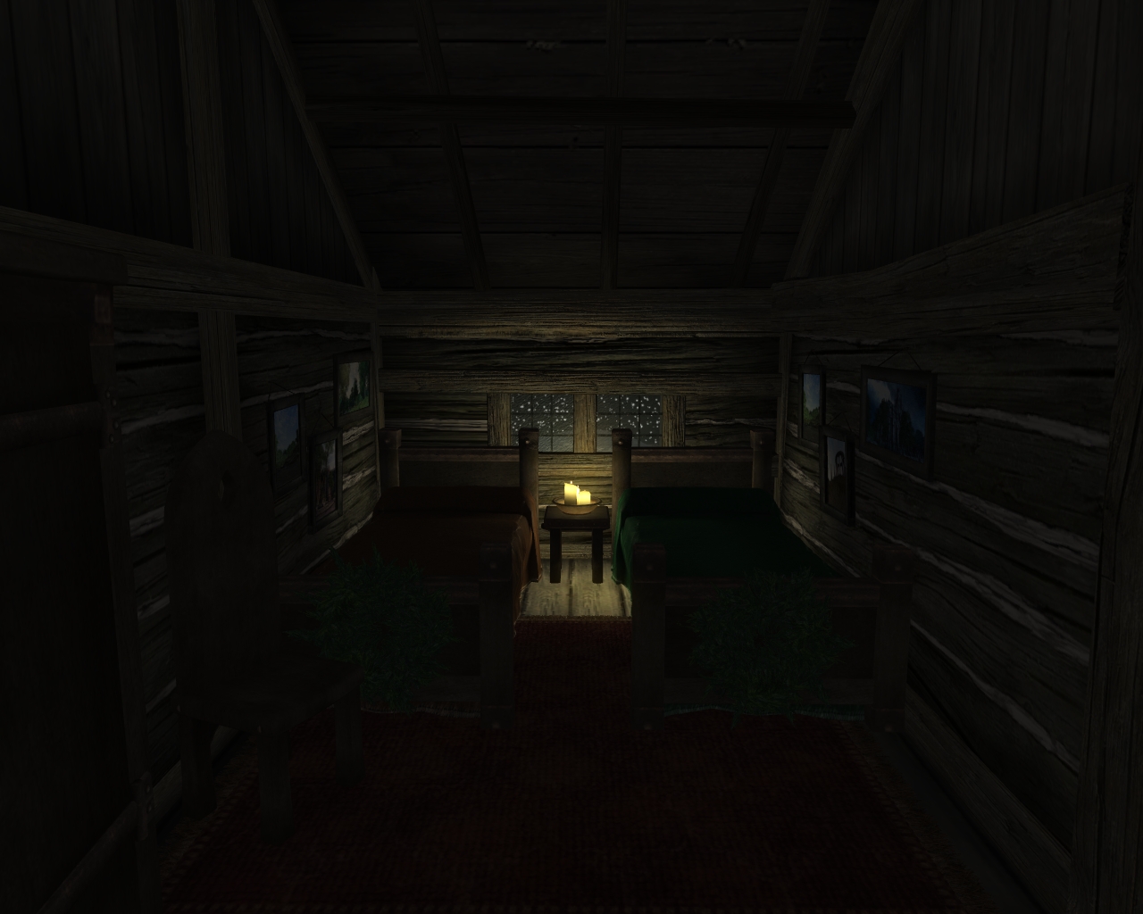 Путешествуя к западу от Брумы, внимательный путник заметит скромную заснеженную хижину. Внутри же царит уют, покой и полумрак. Праздничный стол полон яств, в камине пылает огонь, от теплой воды в бадье валит пар, на маленьком столике притаился чайник с горячим чаем. Кажется, словно минуту назад тут кто-то был, но хижина абсолютно пуста. Устраивайтесь поудобнее, за окном валит снег, а впереди длинная ночь.