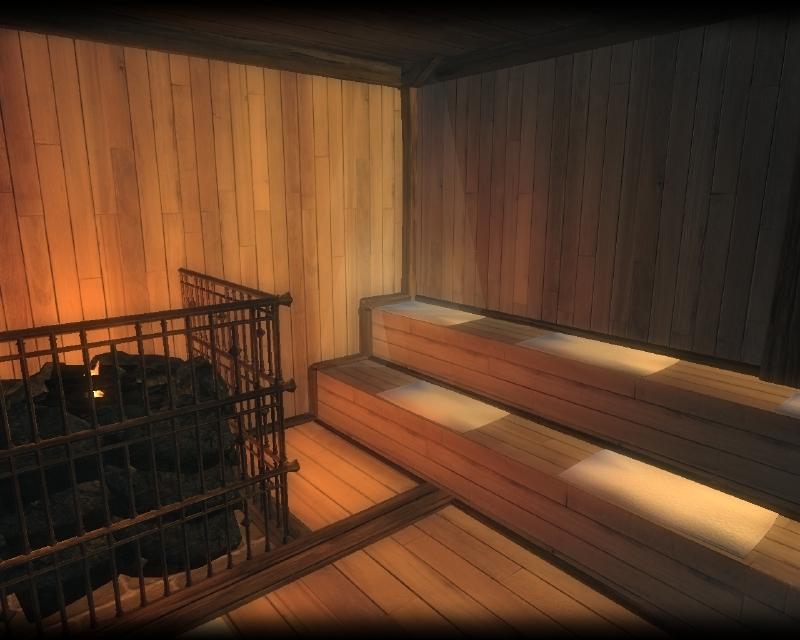 - При входе в ванную комнату с вас автоматически снимется вся одежда. Это касается и компаньонов, ванная комната умещает за раз до пяти человек.