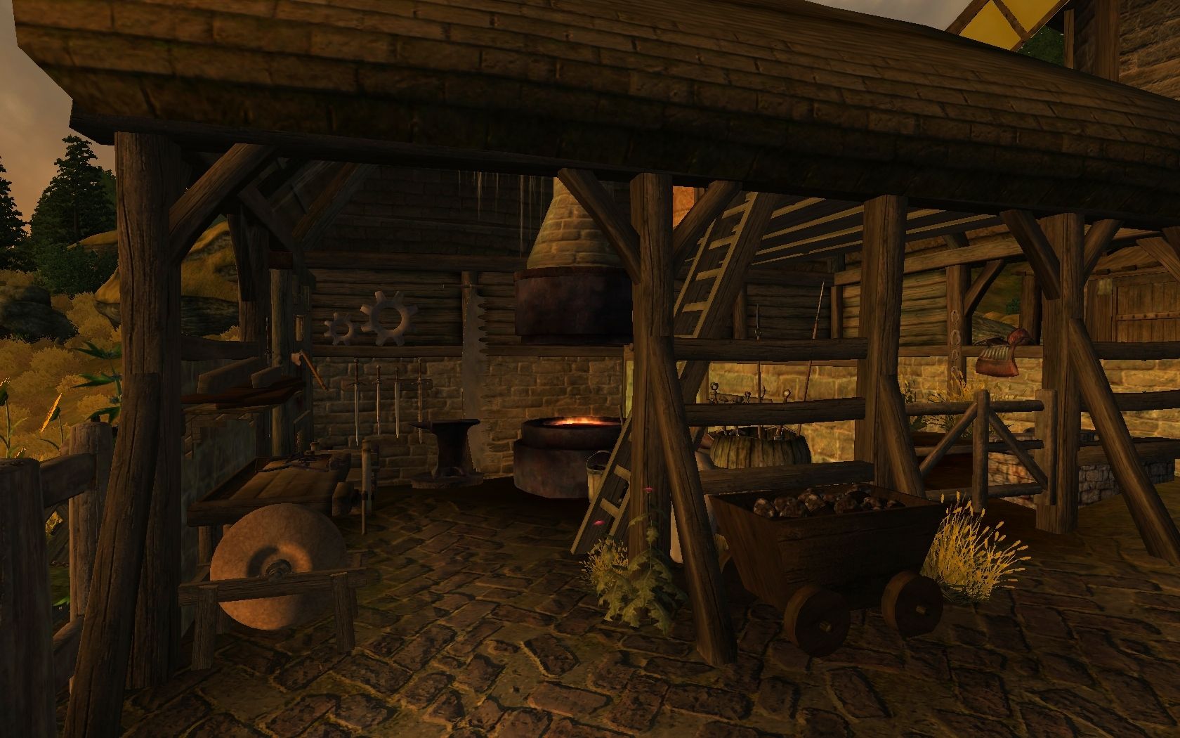 - Конюшня разделена на части и в левой вы найдете интерактивную кузницу, которая придаст вашему ремонту некоей достоверности. Если вы оденете фартук кузнеца, ваш навык возрастет.