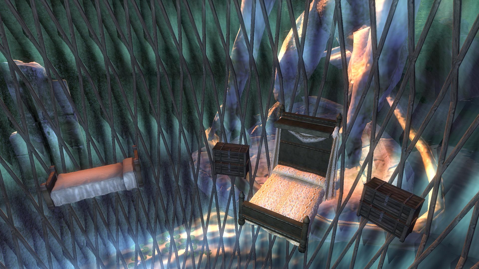 - В доме есть несколько кроватей, алтари зачарования, заклинаний и алтарь девяти.