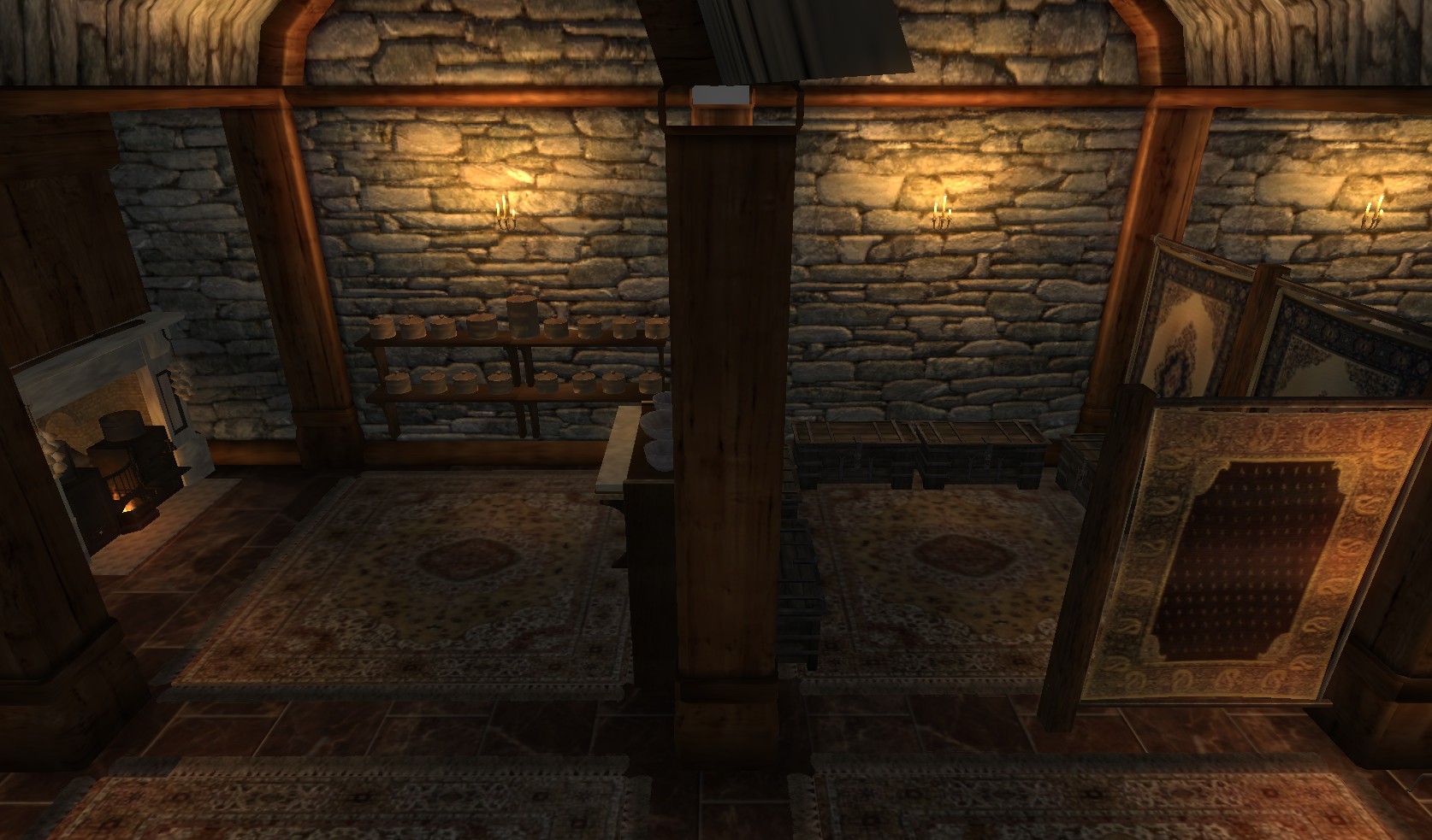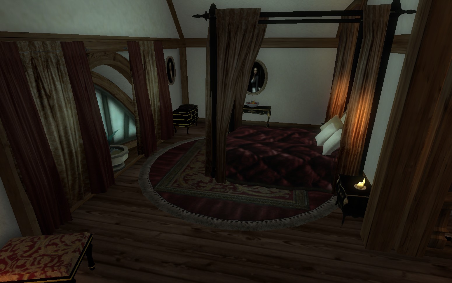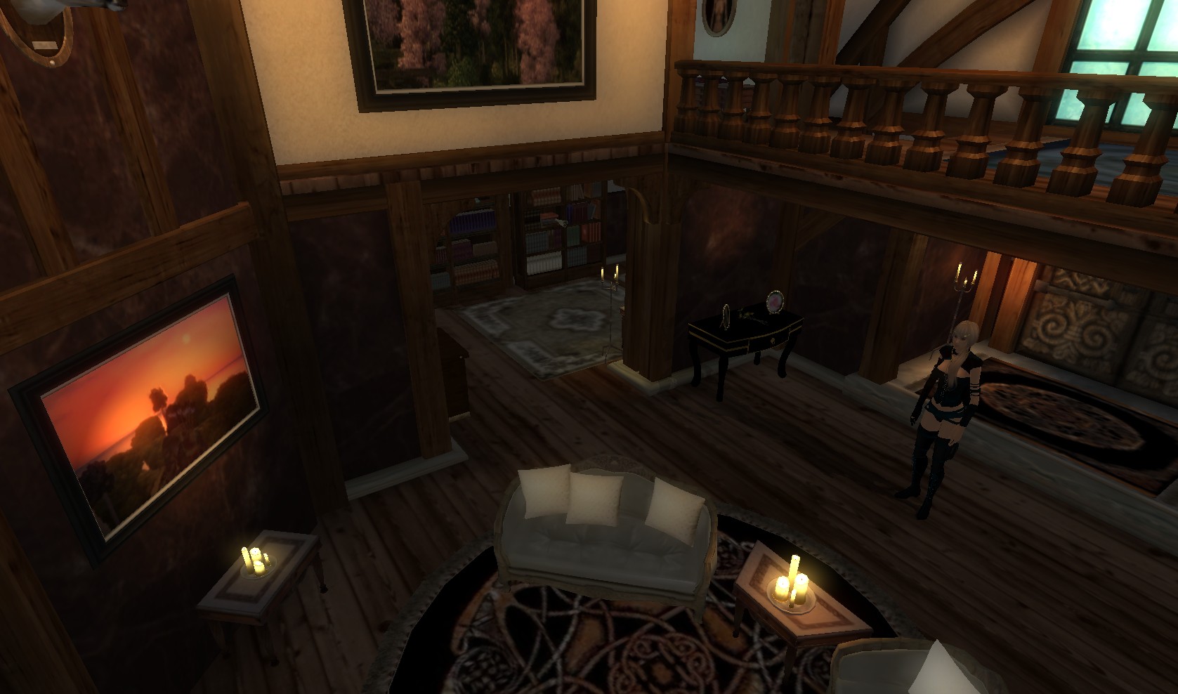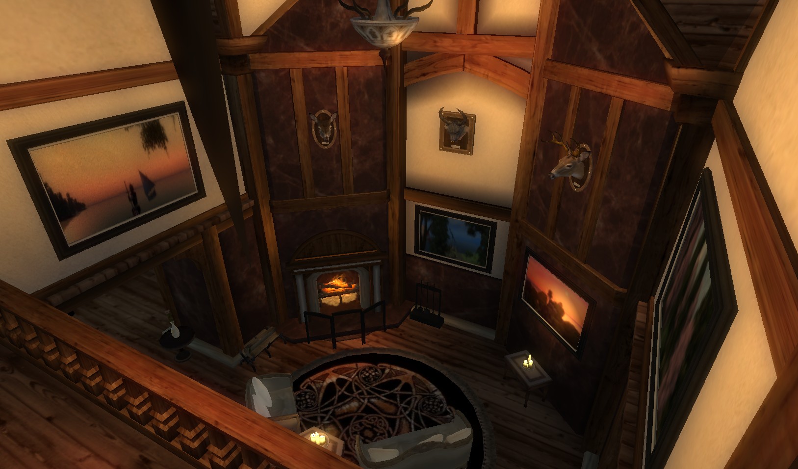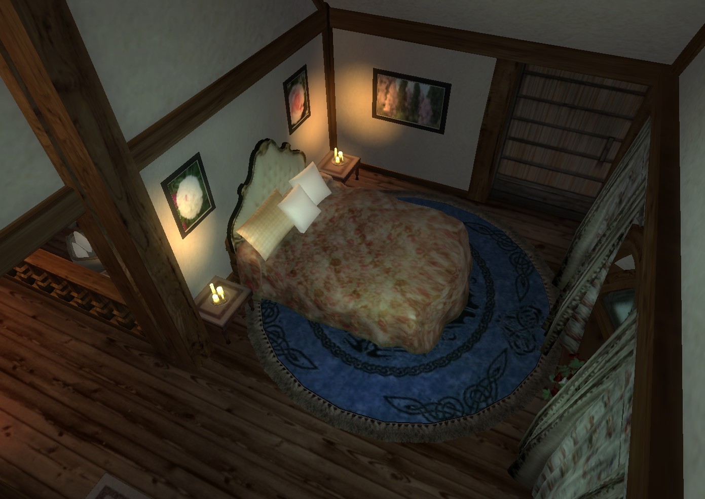 Две спальни, гостиная с камином, столовая, библиотека. Внизу, в подвале, есть большая кухня, студия и хранилище. Все сундуки и мебель можно использовать для хранения (без респауна). Множество картин, в том числе с фотографиями из сада автора мода.