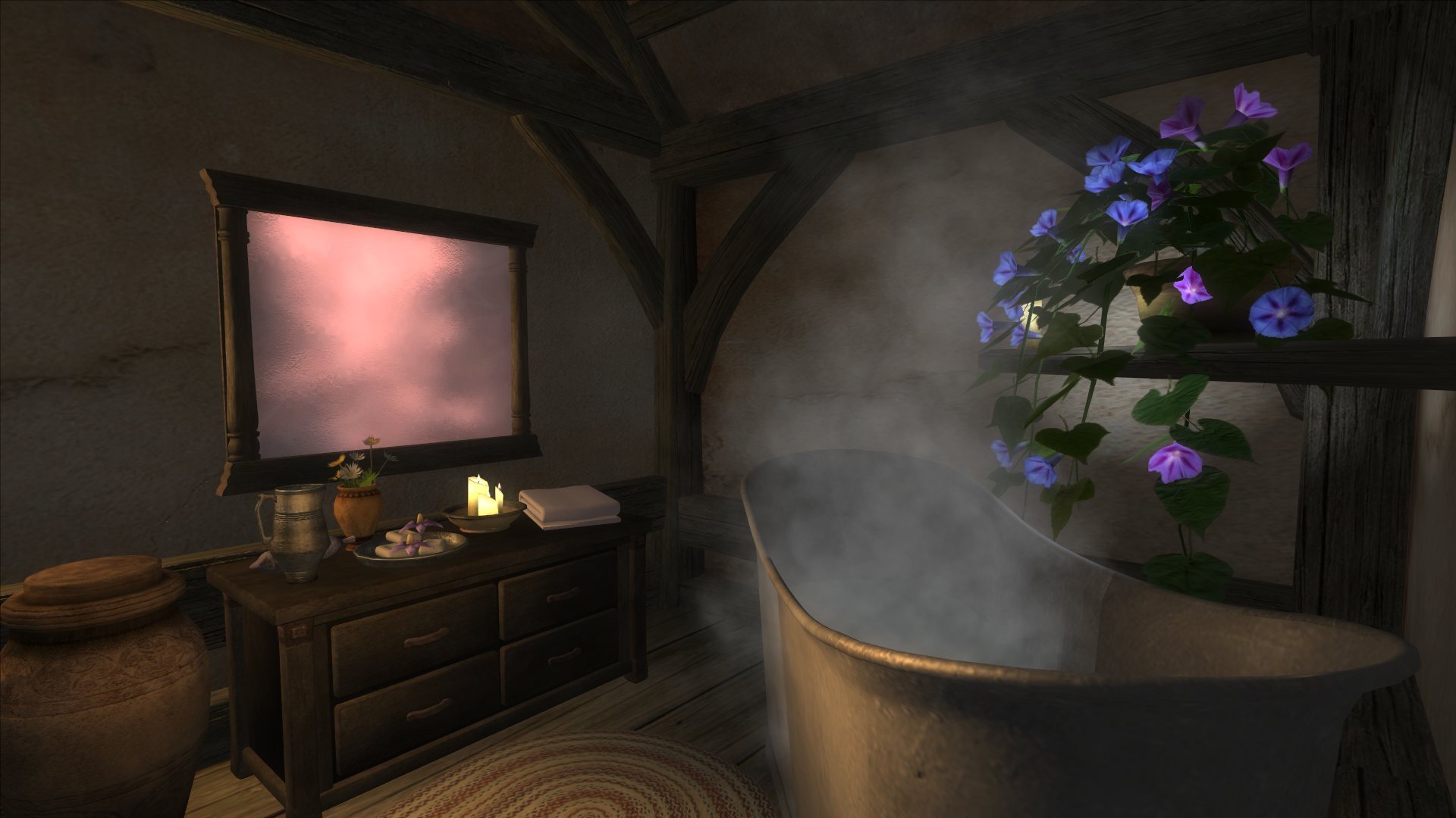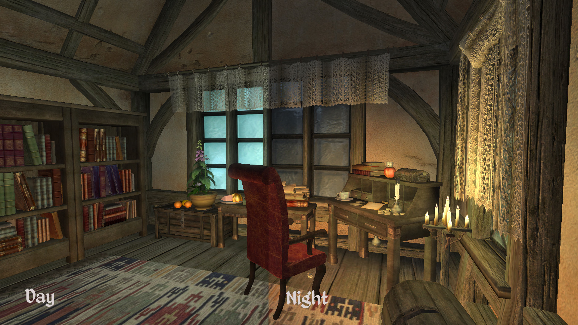 В доме есть подвал, спальня, кухня, гостиная и ванная комната. В доме полно различных тематических сундучков и много новой еды