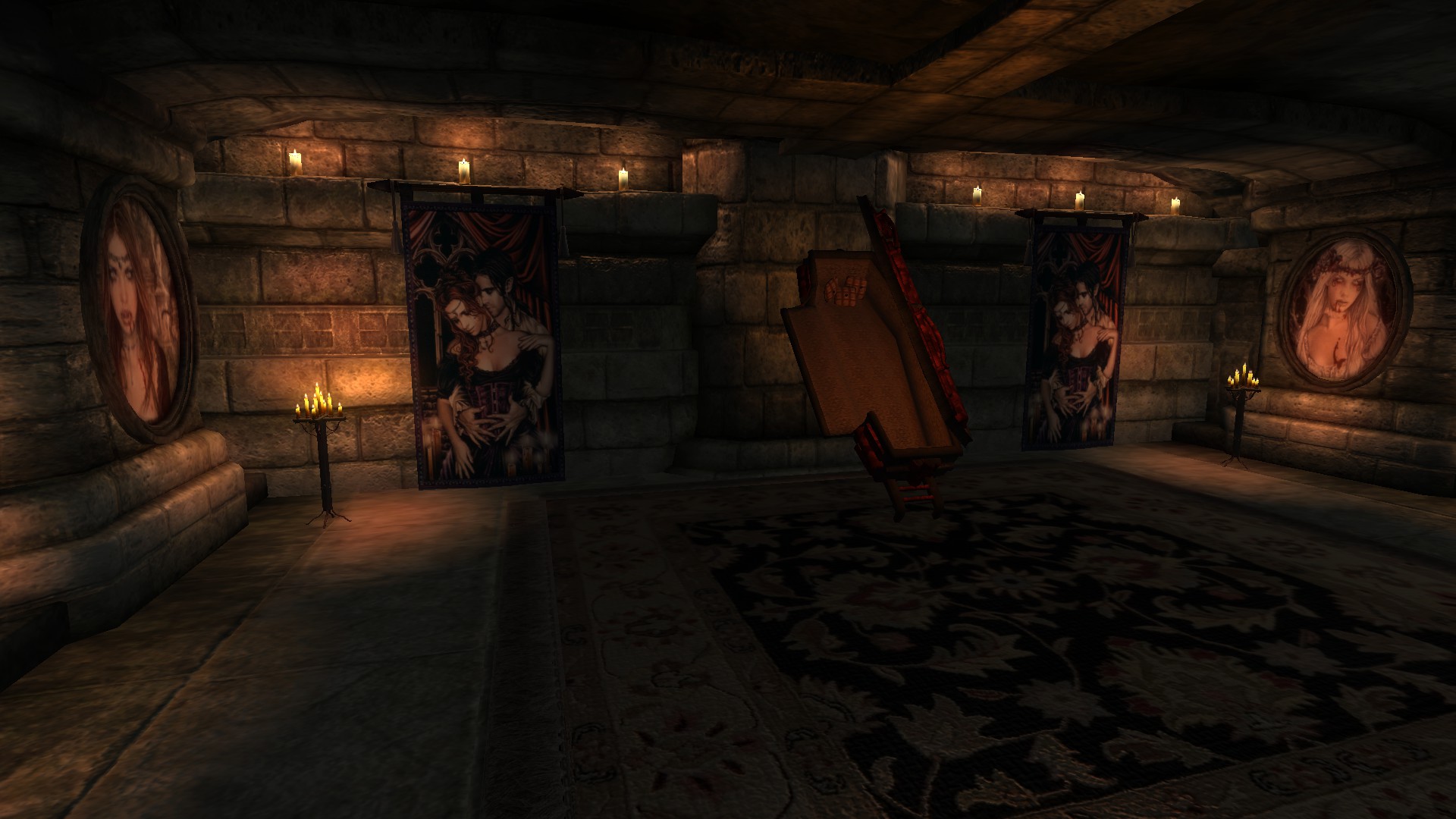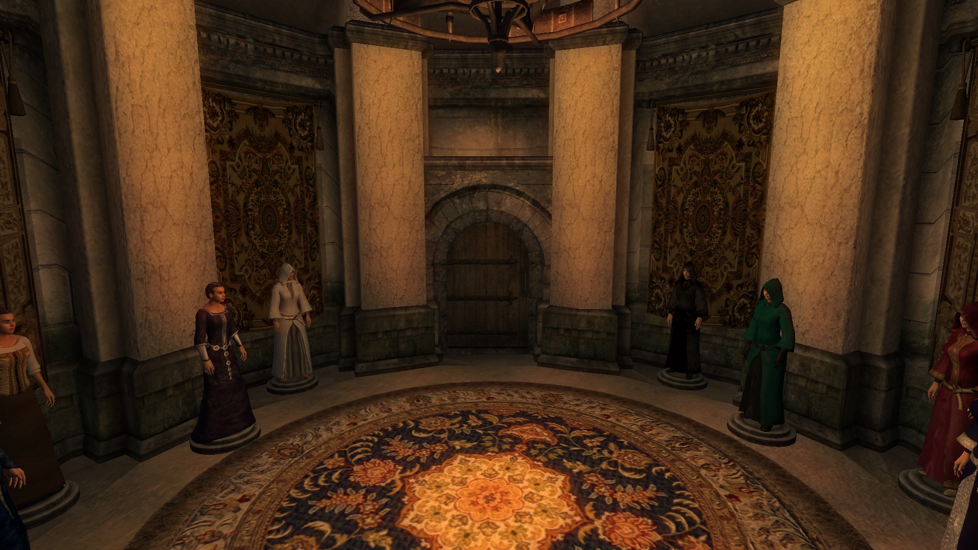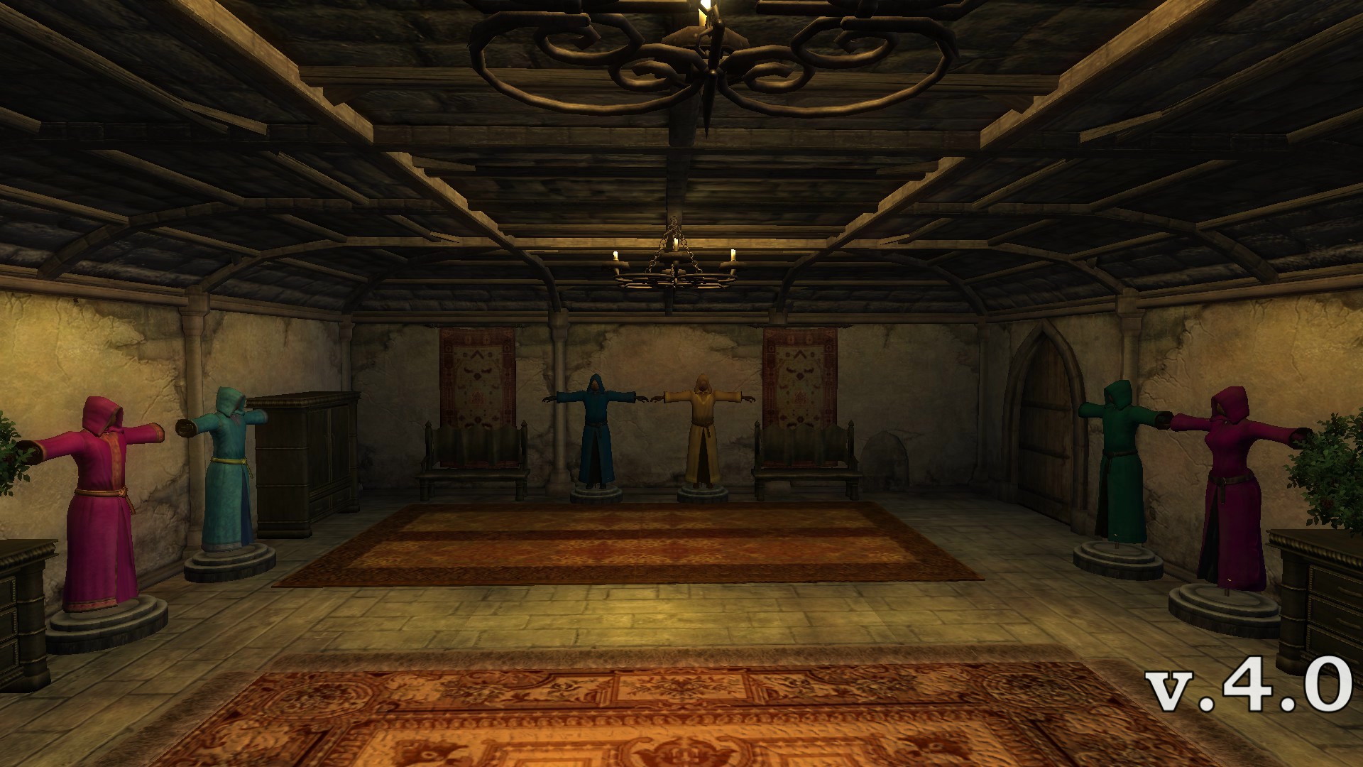 - Функцию установки манекенов и освещение в замке. (Через диалог).