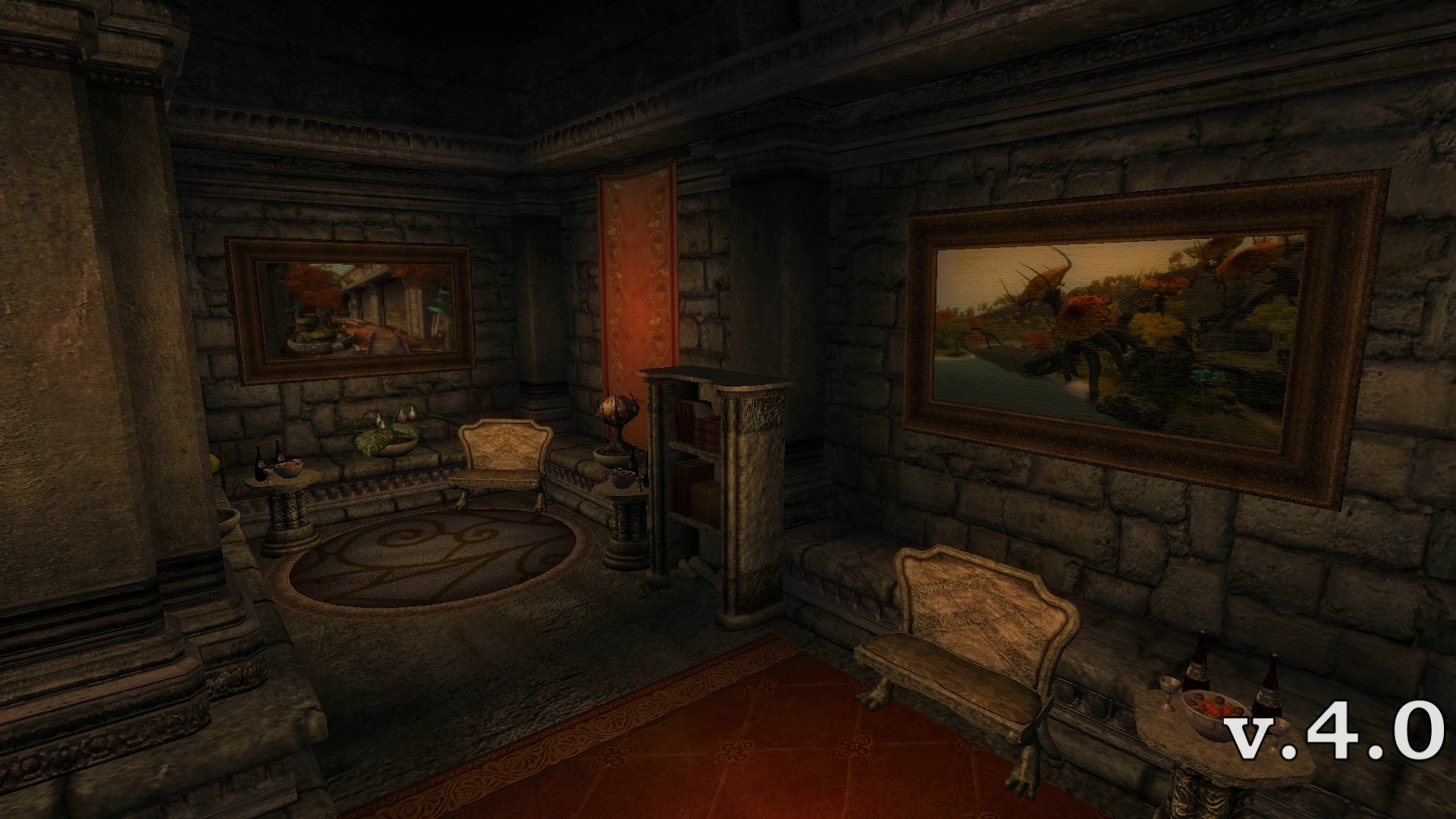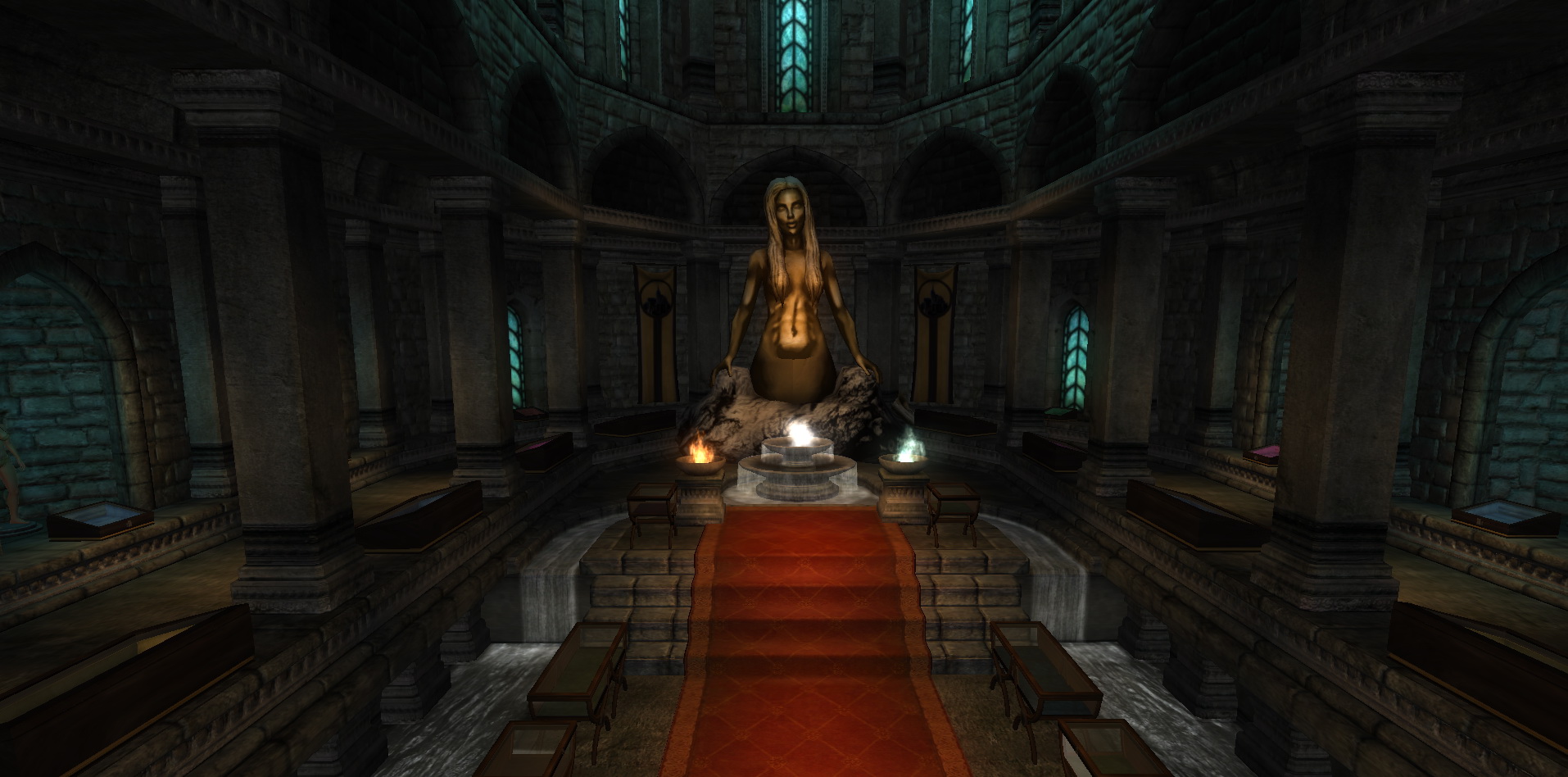 - Святилище Даэдрических артефактов. Вам будет добавлен квест, в котором Дэйдрические лорды будут добавлять в замок свои статуи с озвученными благословениями. Также будет добавлена статуя Дагона и алтарь для хранения кинжала "Бритва Мерунеса".