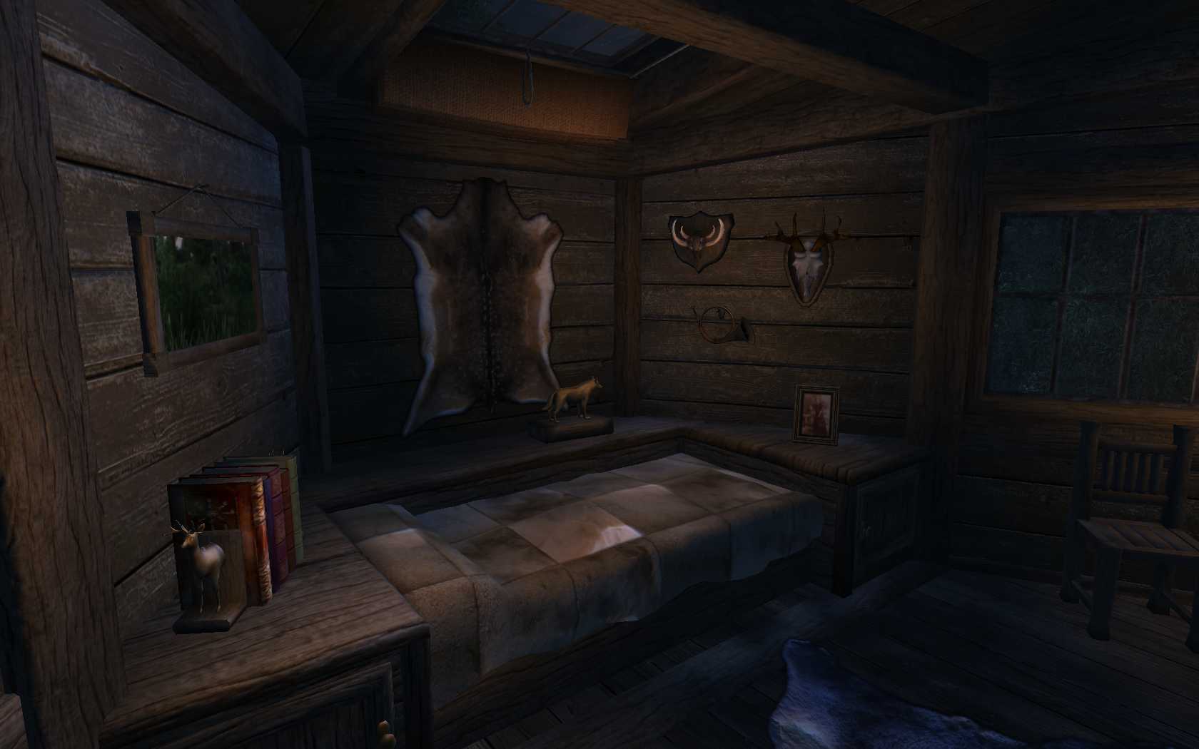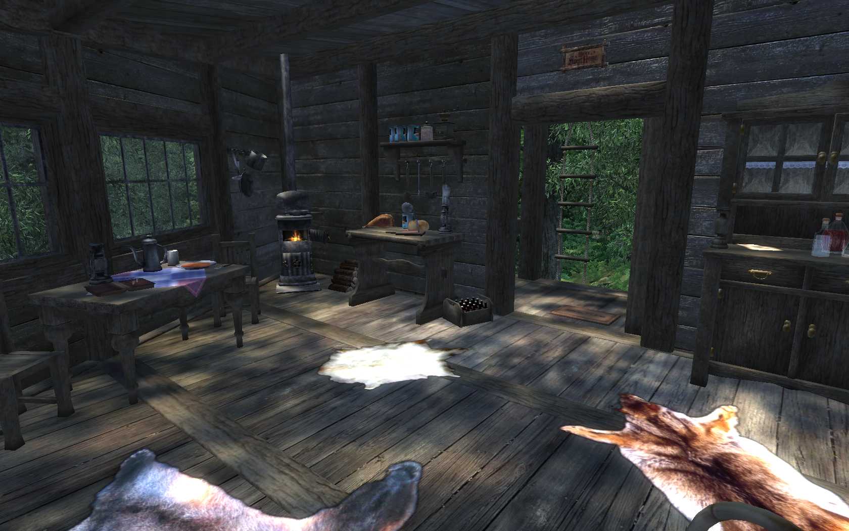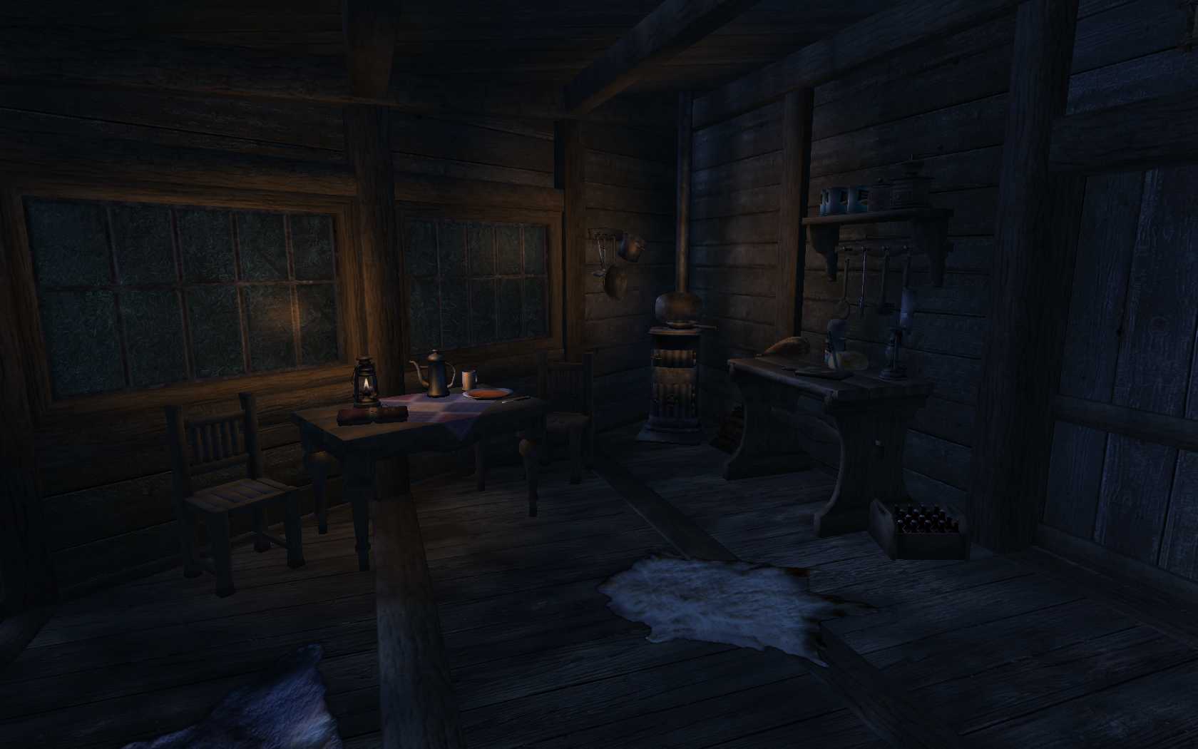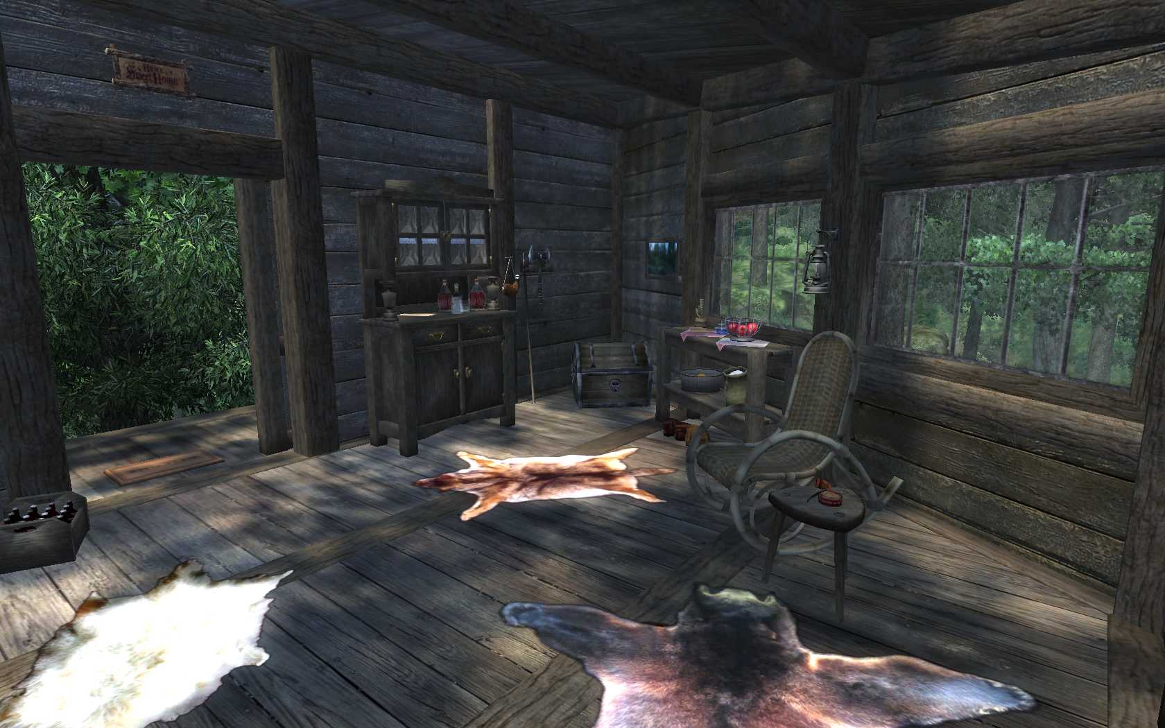 Небольшой, но очень уютный домик для одинокого охотника. Дом полностью находится в экстерьере и использует скрипт для изменения погоды - никакого дождя внутри. В доме найдётся безопасное место для хранения ваших вещей, свет можно выключать. Кроме того, есть два вида оружия и много других интересных мелочей.