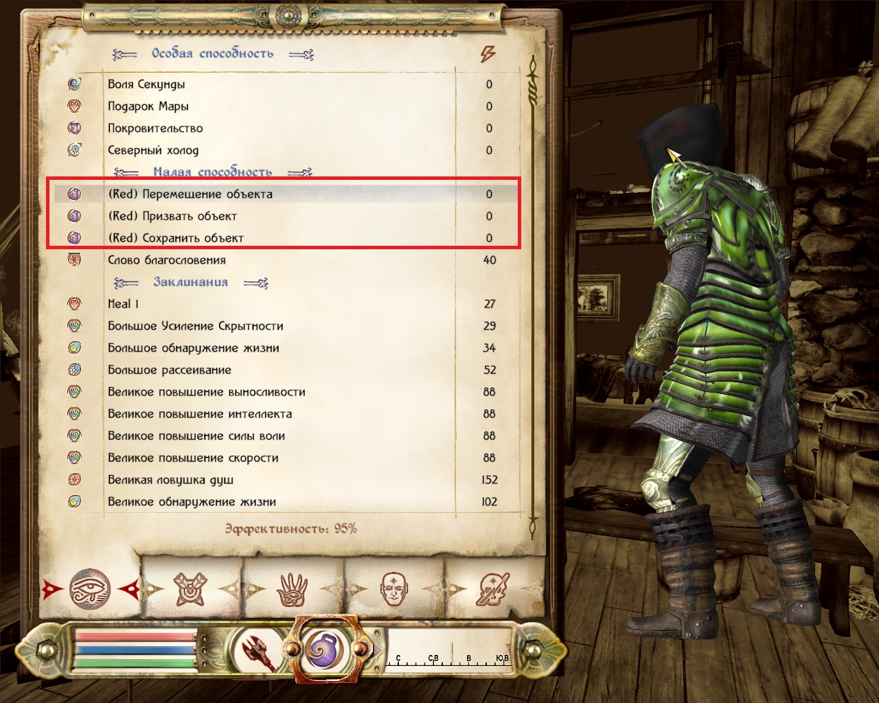– Если предмет висит в воздухе или частично находится в текстуре, сначала, попробуйте привести его в нормальное положение (кнопкой захвата или положить/выложить из инвентаря), только потом применяйте заклинание "Перемещение объекта" для перемещения.