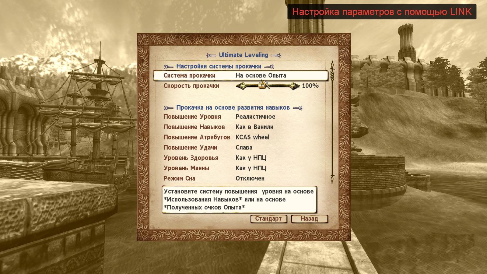 Что тут к этому моду такого требуется то. Обсе стоит, MenuQue стоит... чё ещё то надо? LINK этот? Ну ставил я его, смотрел, и без него смотрел, всё равно надписи на английском в атрибутах перса и в "Progress to Next Level", полоска, где показывается сколько до нового уровня, на фото выше я показал эту фишку. Это если выбираешь именно прокачку от навыков, а не от опыта, как мне и нравится. От опыта же если поставить, таких надписей на инглише там нет.