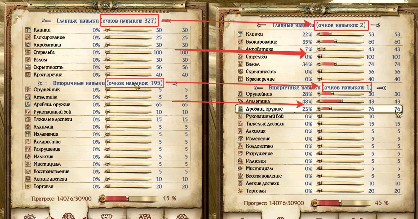 790, Какая инфа тебе нужна?Был ты к примеру магом,прокачал главные навыки до 100(выше качать смысла нет,затраты маны не изменятся и заклы сильнее не станут).Ставишь себе скажем "Путь вора" и твои главные навыки становятся вторичными и вкладывать очки в них не нужно,а так-как на главные навыки дается больше очков-постепенно прокачаешь всё остальное.